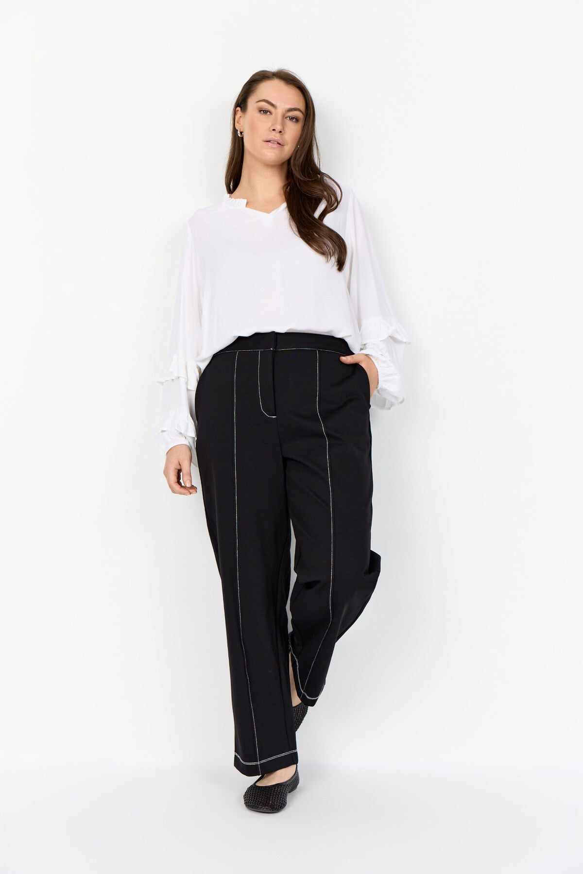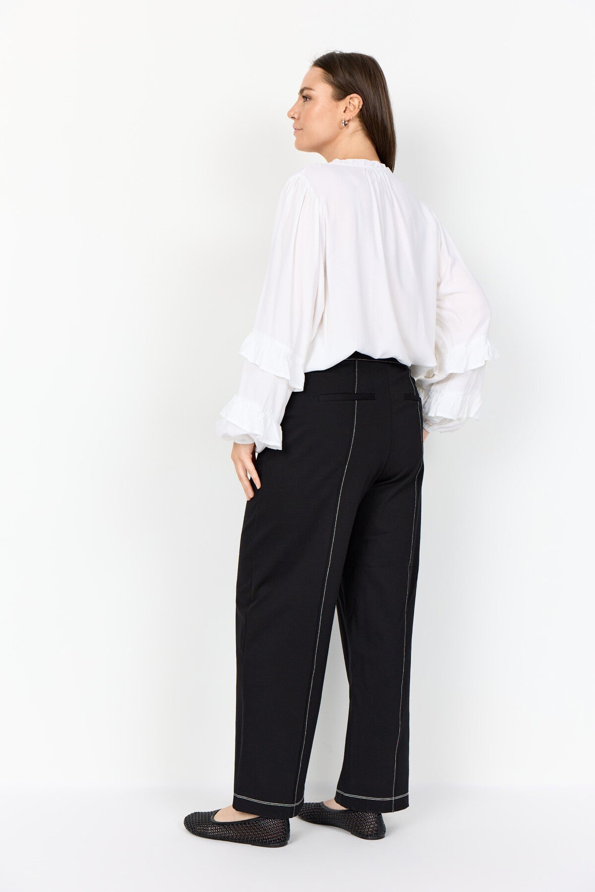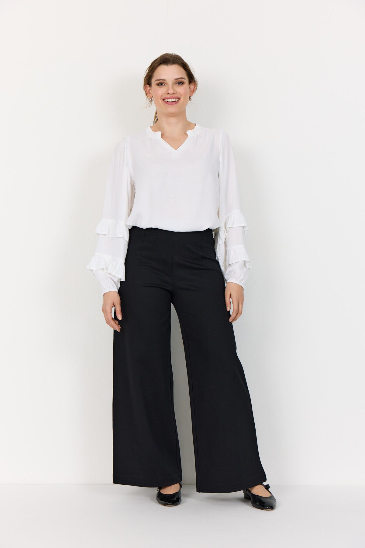 WA-SIA 38 ist eine schöne Bluse aus 100% LENZING™ ECOVERO™ Viskose. Sie hat einen gerüschten Ausschnitt, einen Knopfverschluss, lange Ärmel mit Rüschendetails und eine lockere Passform. Kombinieren Sie sie mit einer maßgeschneiderten Hose oder einem Rock für einen stilvollen Look.