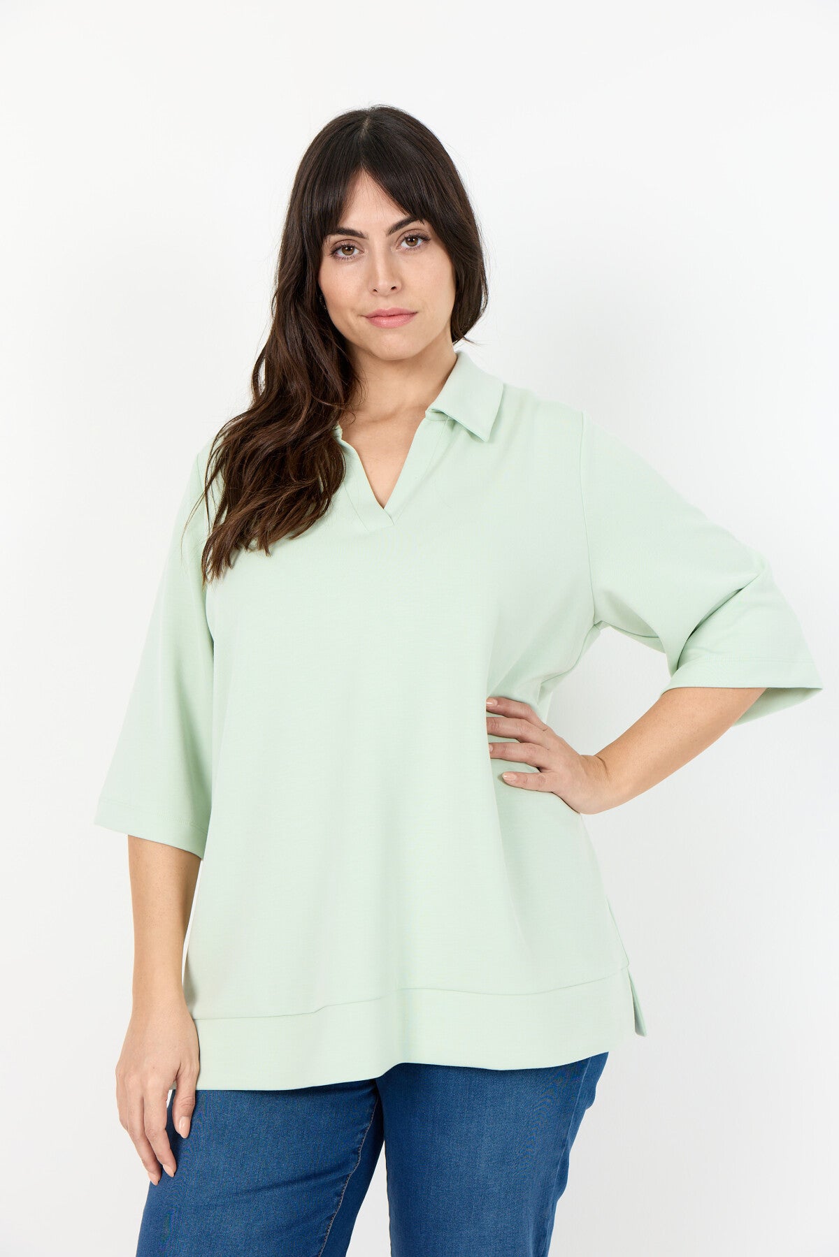 WA-SABINA 83 ist ein lässiges Shirt aus 48% Modal, 48% Polyester und 4% Elasthan. Es hat einen stilvollen Kragen mit V-Ausschnitt und weite, kurze Ärmel. Kombinieren Sie es mit Jeans für einen lässigen Look oder mit einer Hose für einen raffinierten Look.