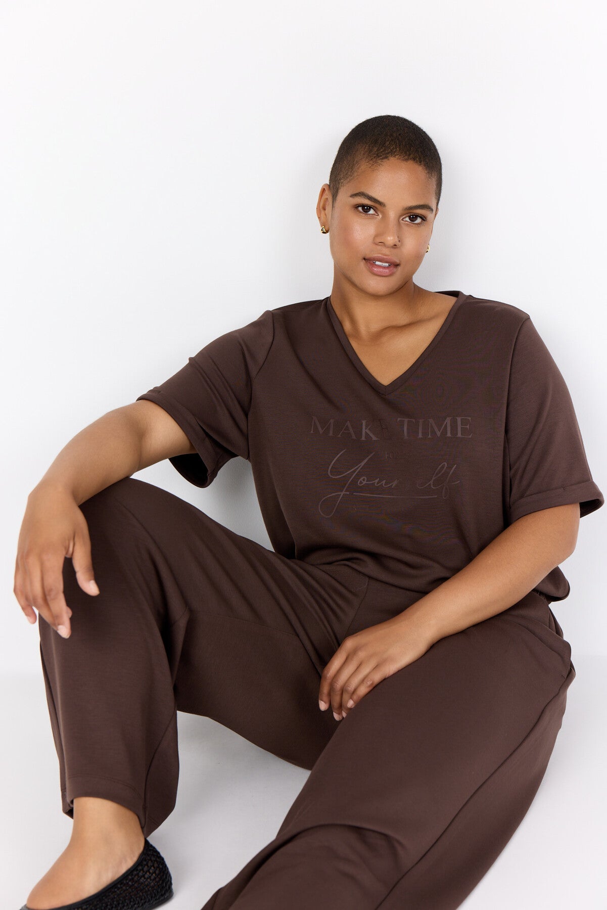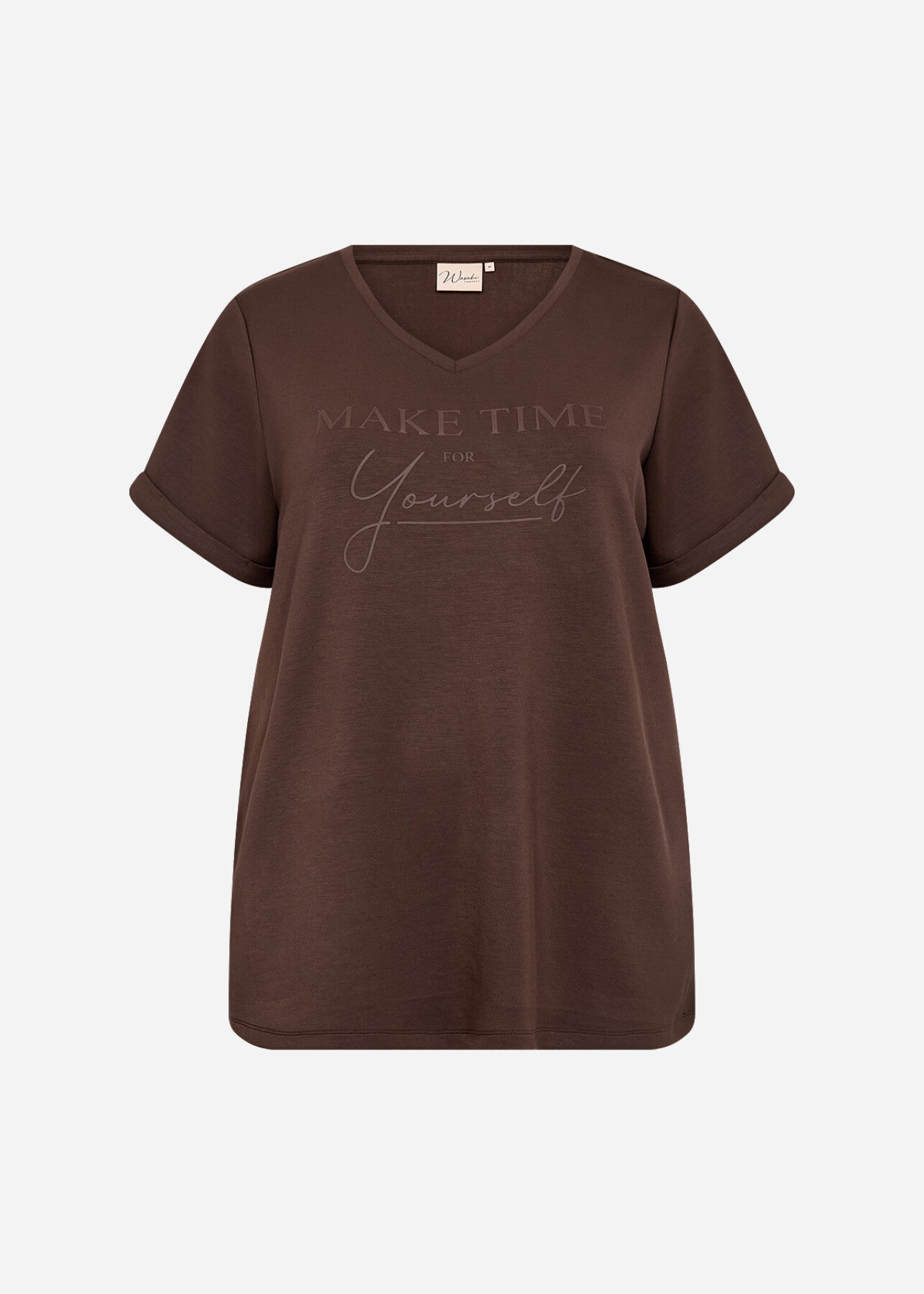 WA-SABINA 57 ist eine Bluse aus 48% Modal, 48% Polyester und 4% Elastan. Die Bluse hat einen V-Ausschnitt, kurze Ärmel mit gerollten Manschetten und einen inspirierenden Textdruck auf der Vorderseite. Kombiniere sie mit Jeans oder lässigen Hosen für einen entspannten Look.