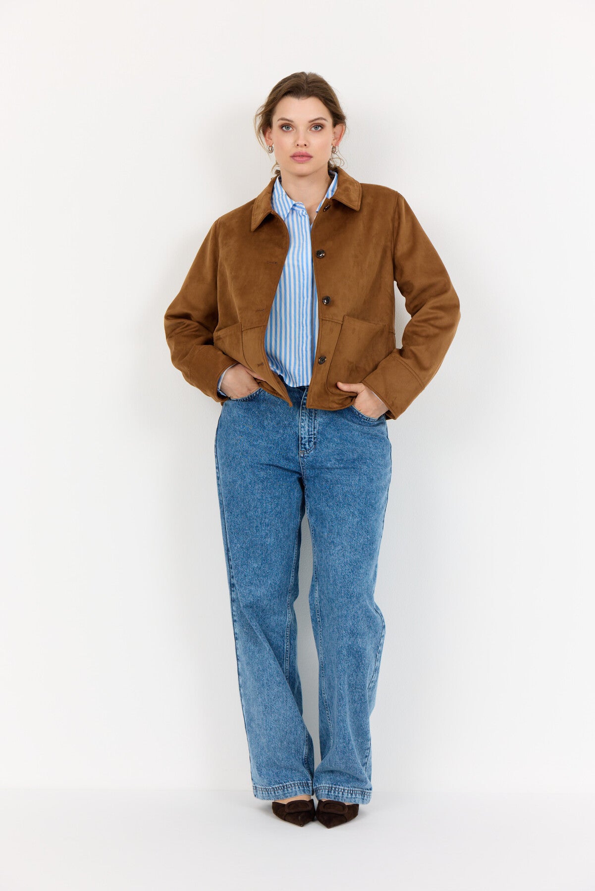WA-CILJE 1 präsentiert eine coole Jacke aus 100% recyceltem Polyester. Sie verfügt über einen klassischen Kragen, eine Knopfleiste und zwei große Taschen auf der Vorderseite, die die glatte Textur ergänzen. Perfekt zum Kombinieren mit Jeans oder Hosen für einen coolen und einzigartigen Look.
