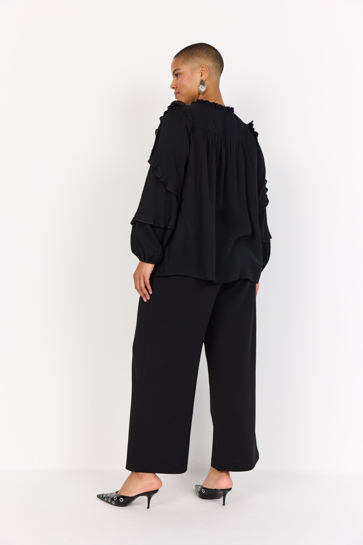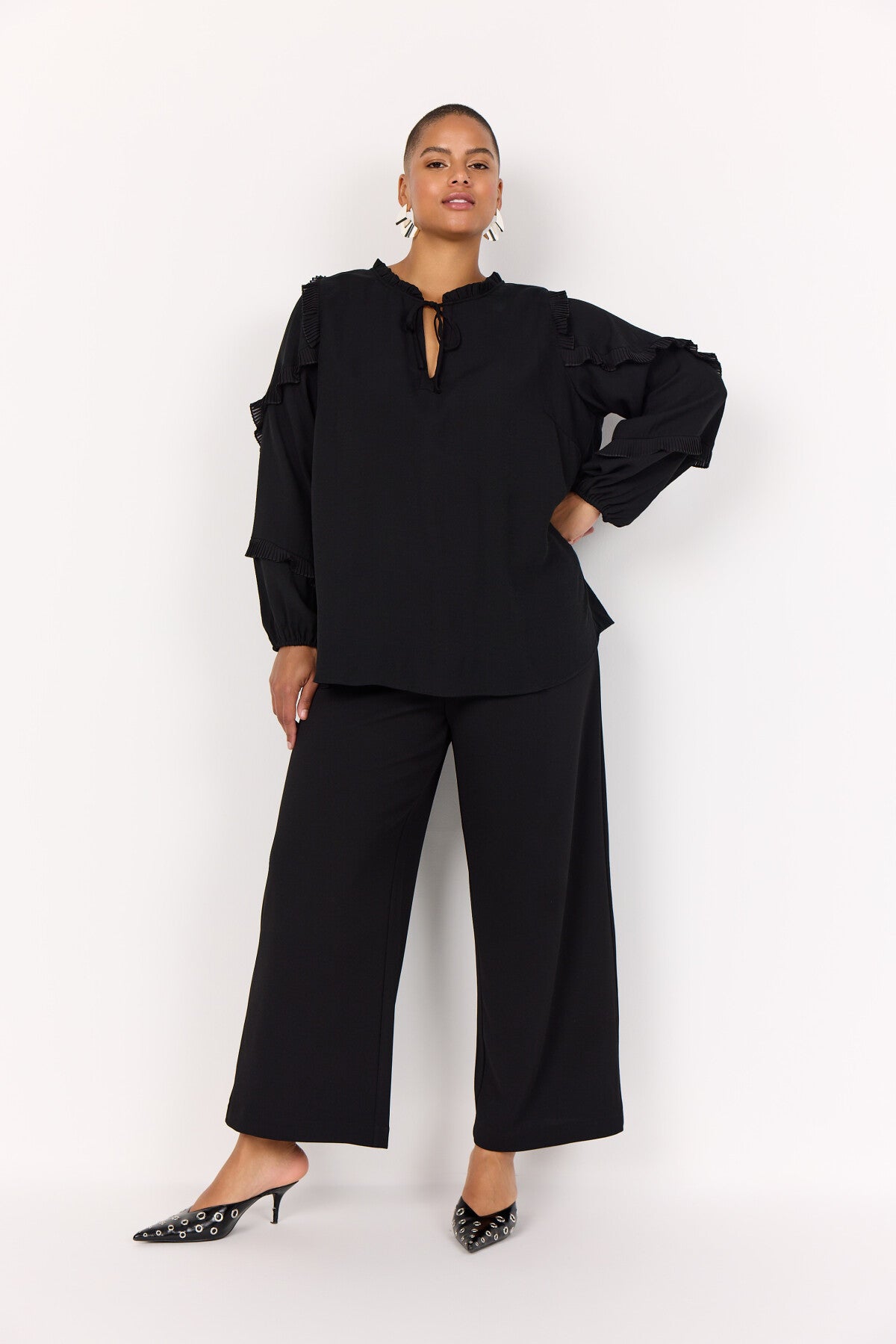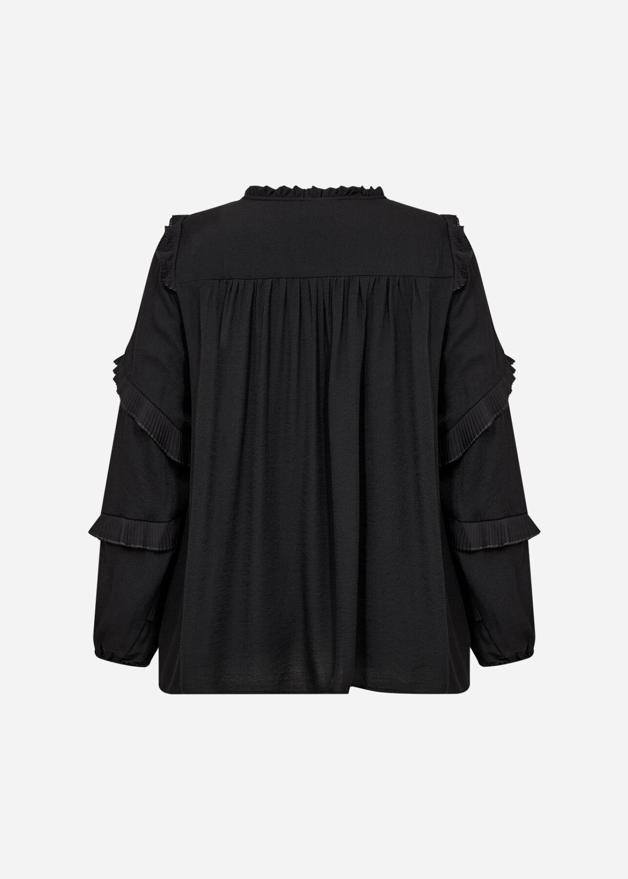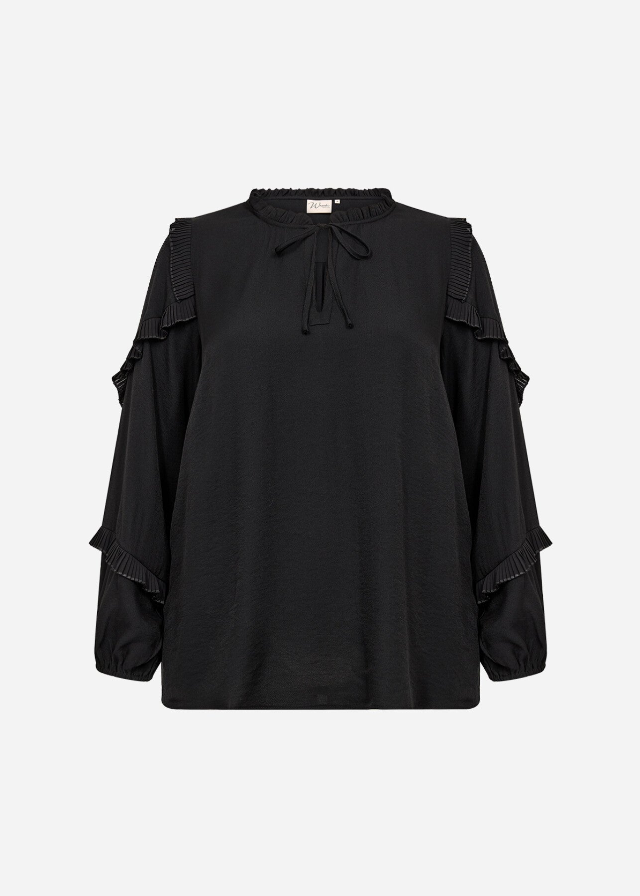 WA-SAFIA 1 ist eine Bluse aus 85% LENZING™ ECOVERO™ Viskose, 15% Nylon. Diese elegante Bluse hat plissierte Rüschendetails an den Ärmeln, eine Bindung im Nacken, einen dezenten Kragen und eine lockere Passform. Kombiniere sie mit einer maßgeschneiderten Hose für einen raffinierten Look oder mit einer Jeans für einen coolen, lässigen Stil.
