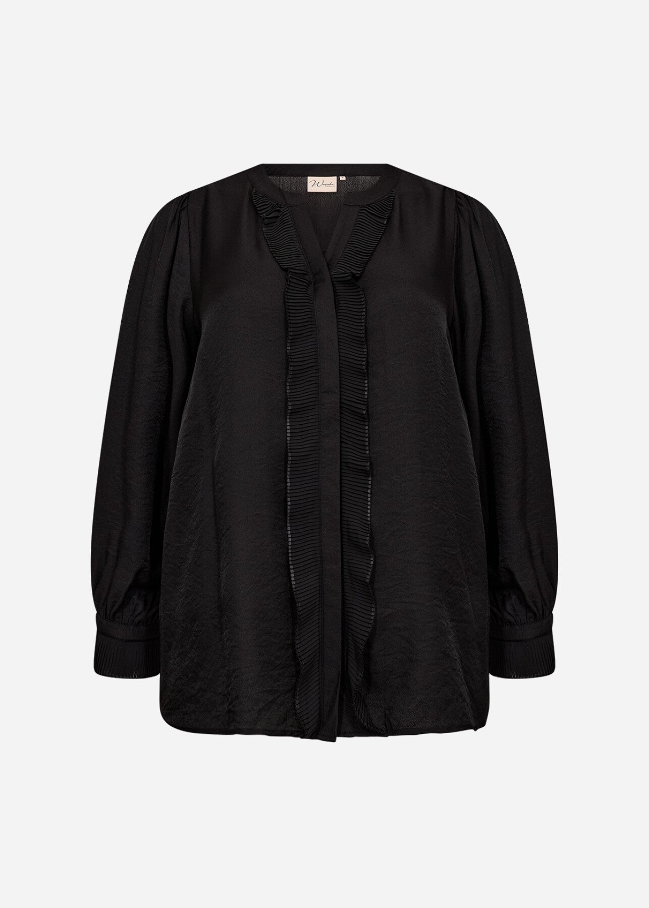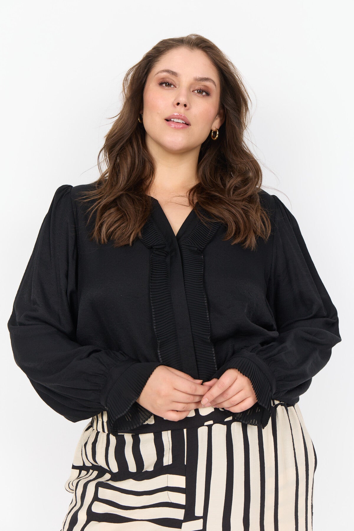 Die WA-SAFIA 2 Bluse ist aus 85% LENZING™ ECOVERO™ Viskose und 15% Nylon gefertigt. Die Bluse hat einen dezenten V-Ausschnitt, Plissee-Details und eine lockere Passform. Kombiniere sie mit einer maßgeschneiderten Hose oder Jeans für einen eleganten Look.