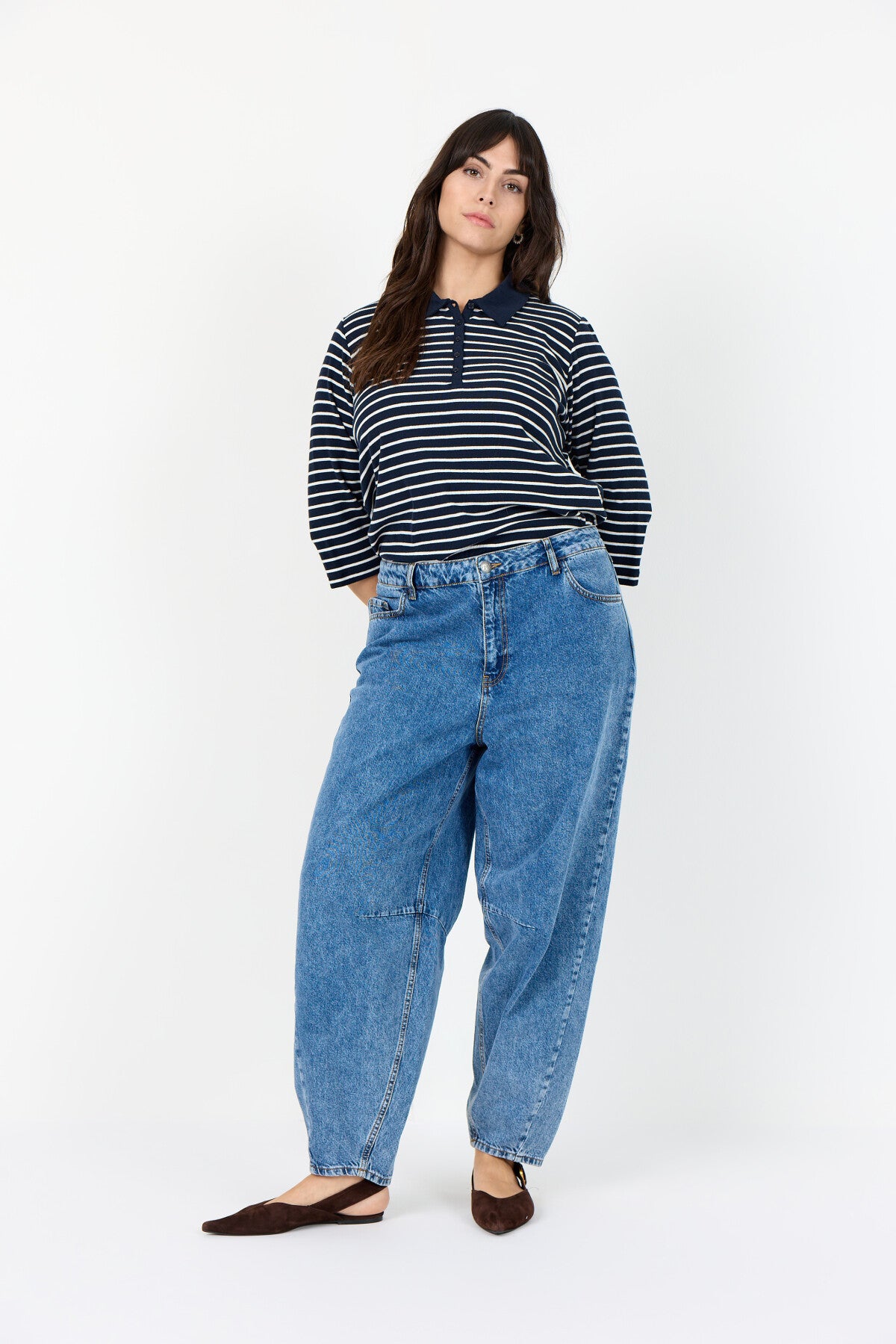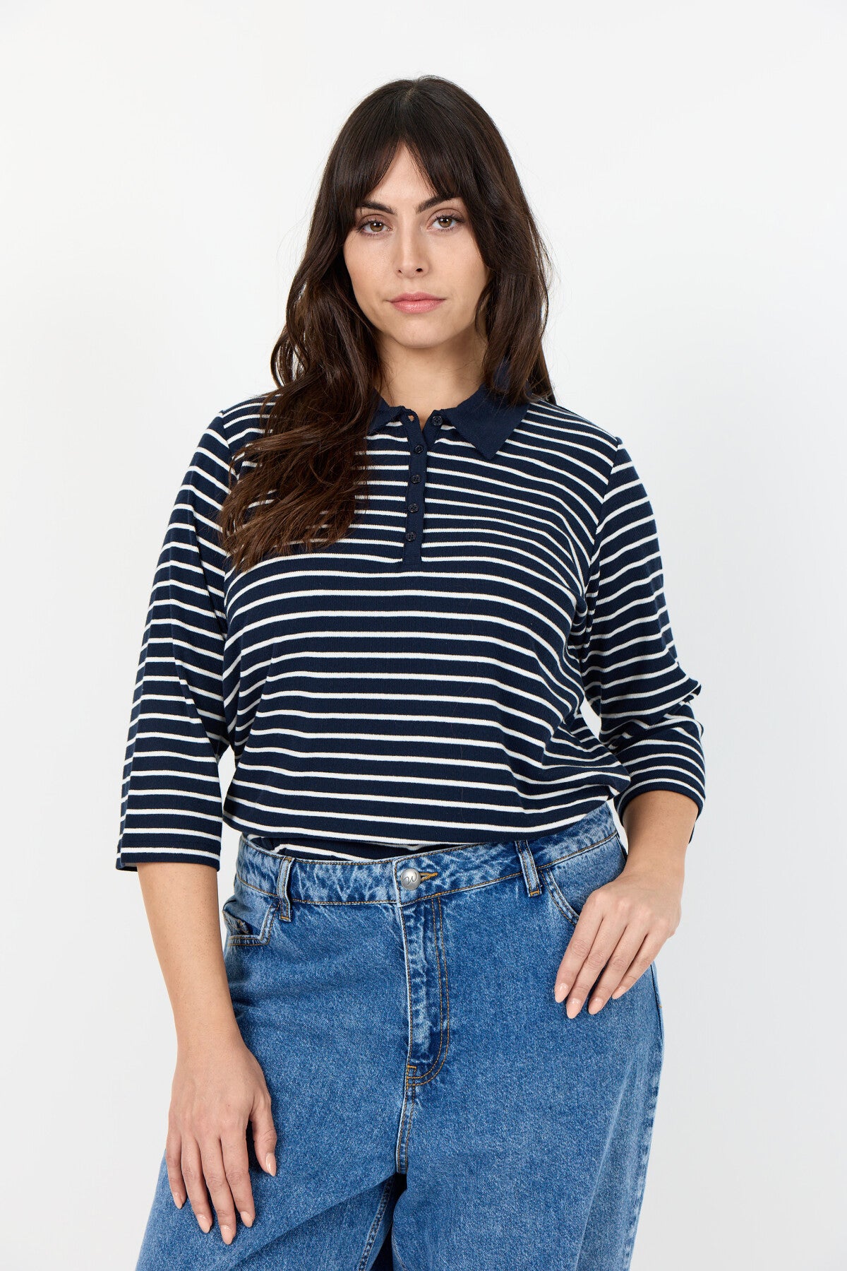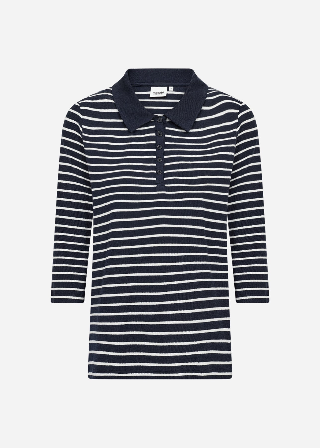 WA-SAKAR 3 ist eine Bluse aus 65% recycelter Baumwolle, 30% LENZING™ ECOVERO™ Viskose und 5% Elastan. Sie hat einen klassischen Halsausschnitt, einen Knopfverschluss und dreiviertel Ärmel mit einem gestreiften Print für einen frischen Look. Kombinieren Sie es mit Ihrer Lieblingsjeans oder einer maßgeschneiderten Hose für einen eleganten Touch.