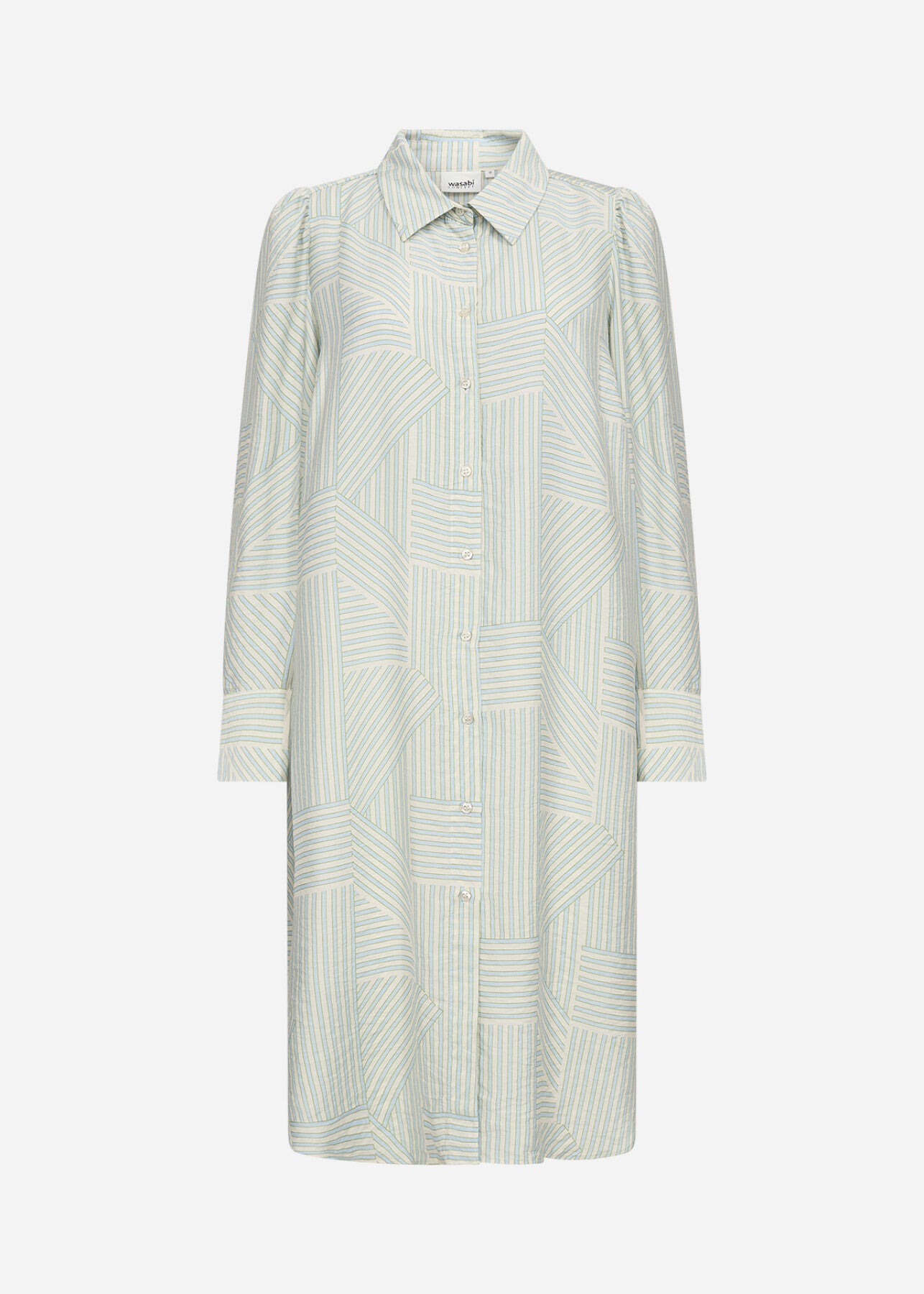 WA-SEMINA 3 ist ein klassisches Hemdkleid aus 82% LENZING™ ECOVERO™ Viskose, 18% Polyamid. Dieses stilvolle Hemd hat einen klassischen Kragen, eine geknöpfte Vorderseite und einen mittellangen Schnitt mit einem einzigartigen geometrischen Druck. Kombinieren Sie es mit einer maßgeschneiderten Hose und Loafers für einen raffinierten Look.