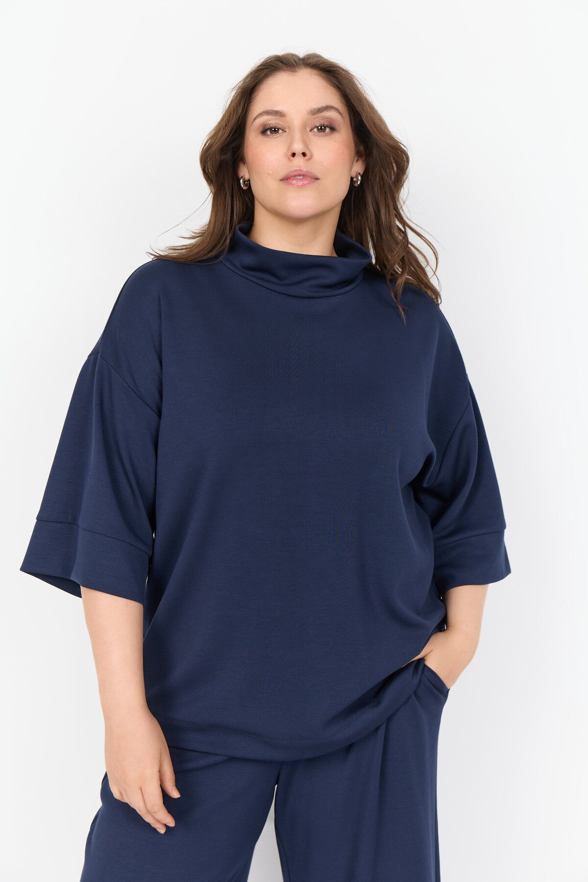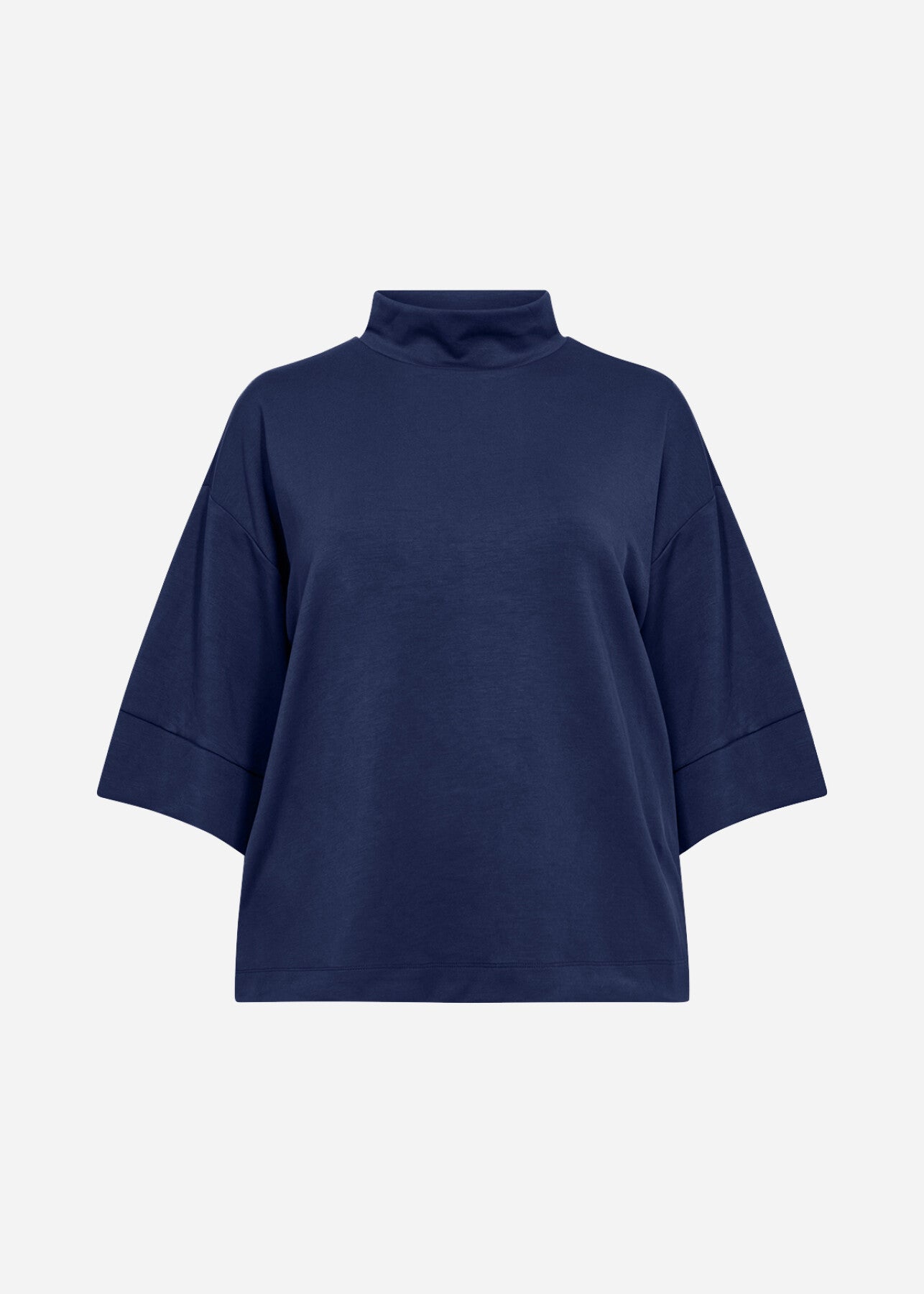WA-SABINA 64 ist ein T-Shirt aus 48% Modal, 48% Polyester und 4% Elasthan. Das T-Shirt hat einen modischen Rundhalsausschnitt und weite 3/4-Ärmel, die für eine entspannte Silhouette sorgen. Kombiniere es mit einer schmalen Jeans oder einem eleganten Rock für einen eleganten Look.