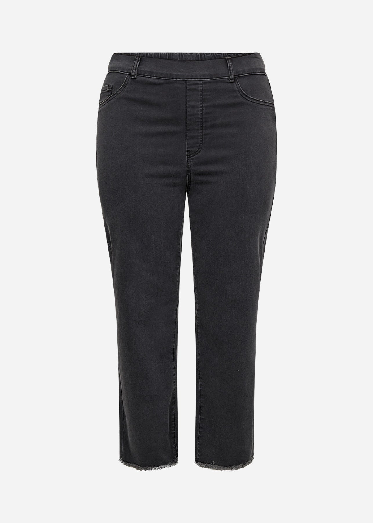 WA-Summer 5 ist eine schmeichelhafte Jeans aus einer schönen Mischung aus Baumwolle, Polyester und Elastan. Die Hose hat eine hohe Taille, eine leicht verkürzte Länge, vier Taschen, eine enge Passform und ein dehnbares Material für Komfort. Kombinieren Sie diese klassische Jeans mit einem übergroßen Hemd und Sandalen für einen minimalistischen Look.