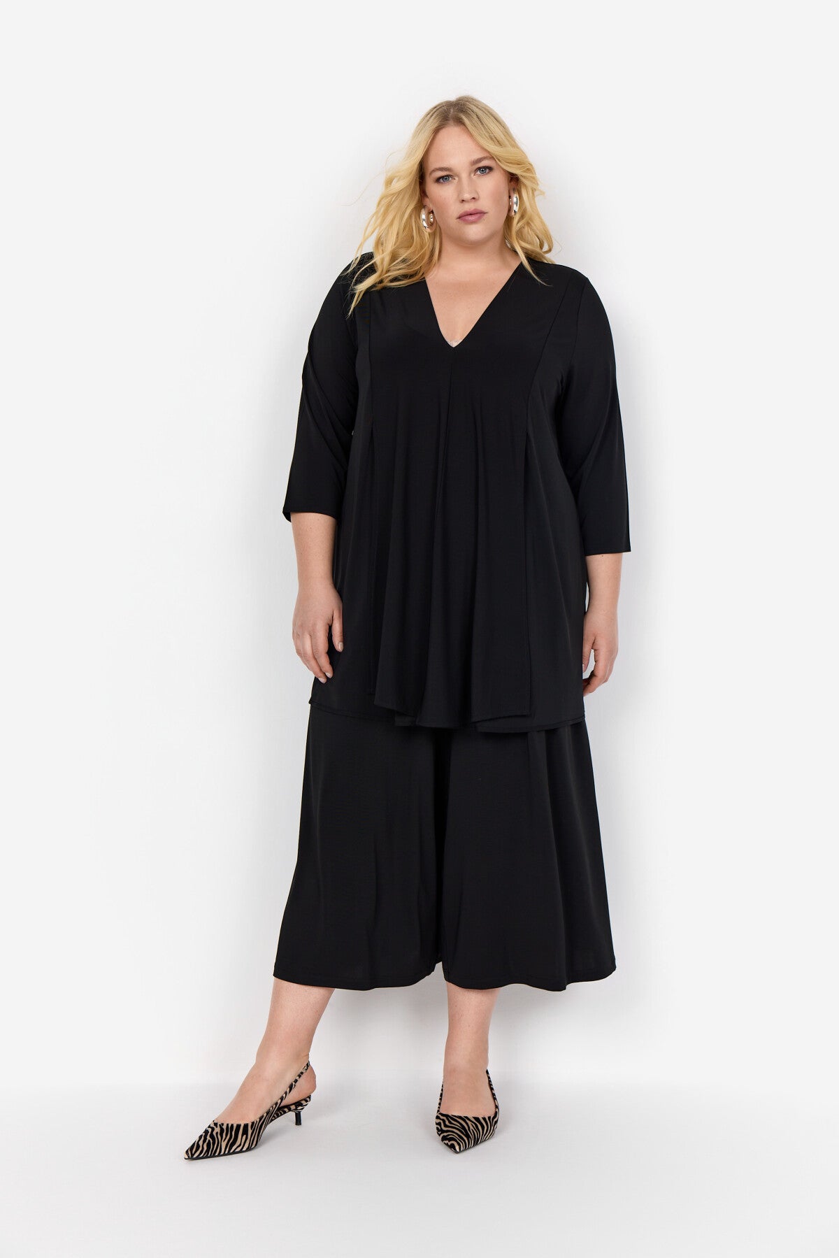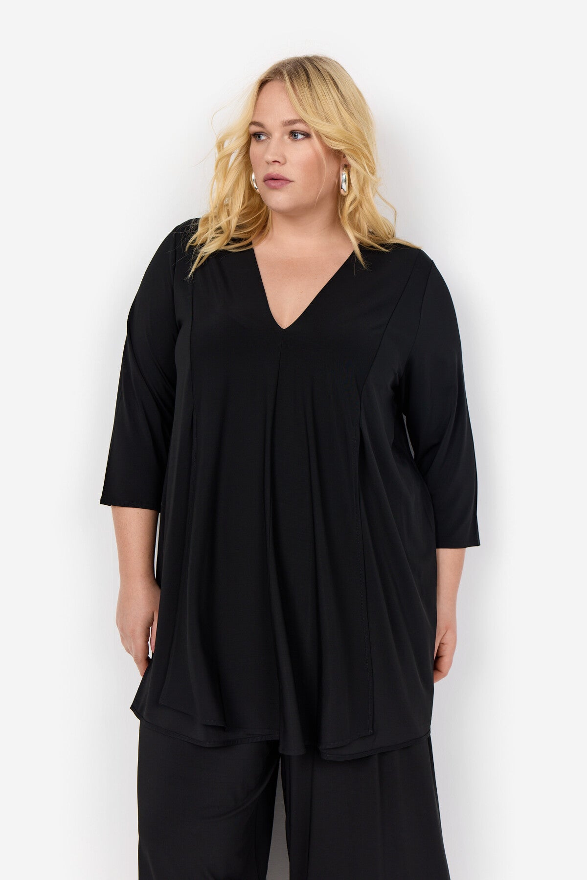 WA-LILJA 2 präsentiert die Bluse mit 92% Viskose und 8% Elasthan. Sie hat einen V-Ausschnitt mit Dreiviertel-Ärmeln und ein fließendes Design. Trage die Bluse zu einer maßgeschneiderten Hose für formelle Anlässe oder zu einer Jeans für einen lässigen Look.