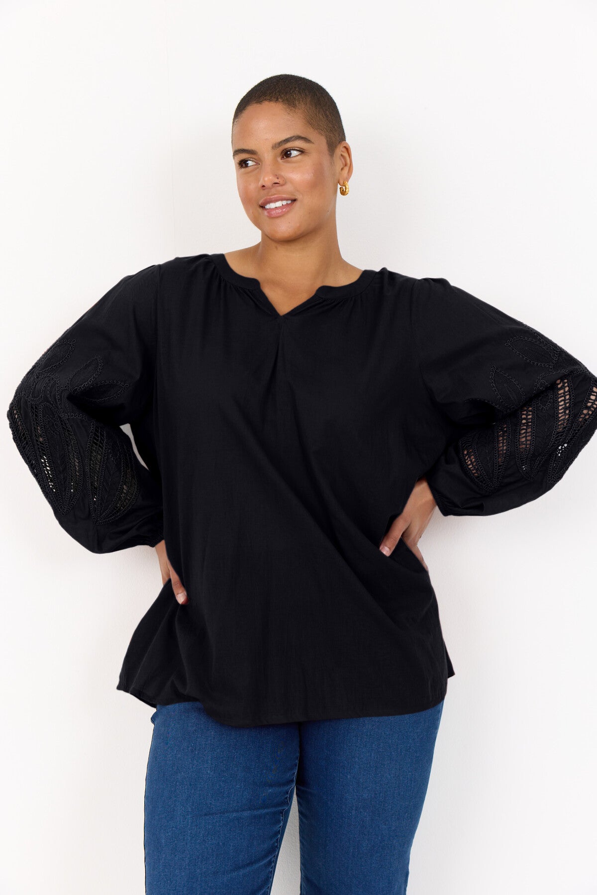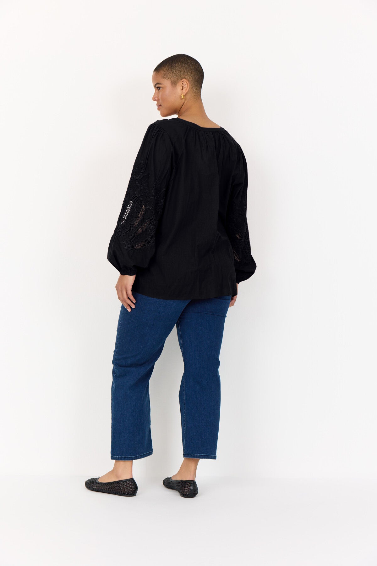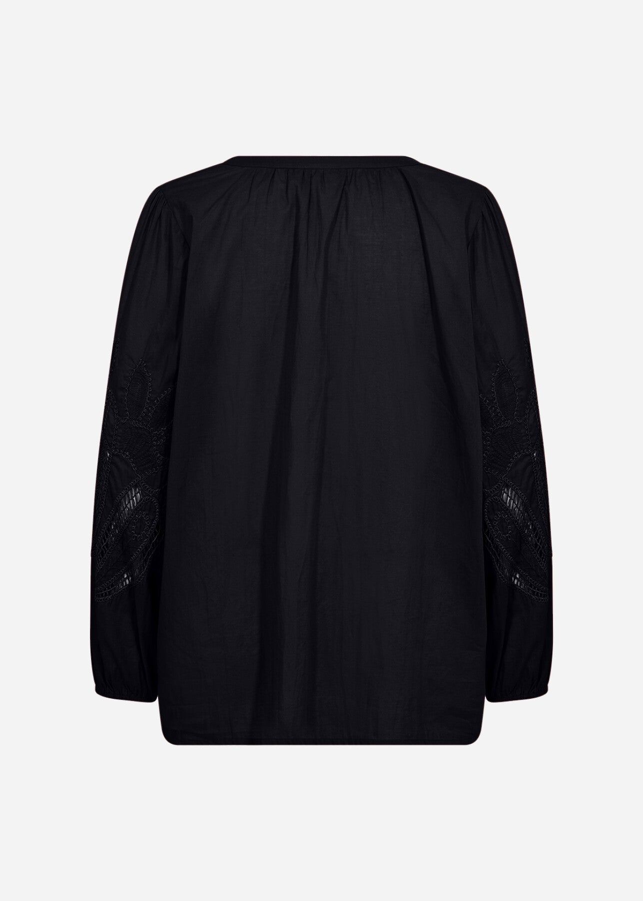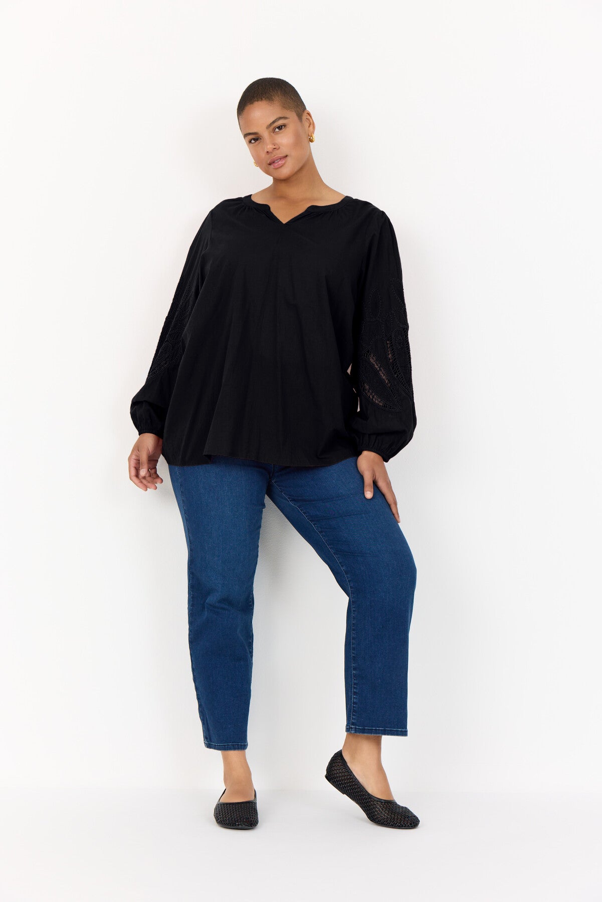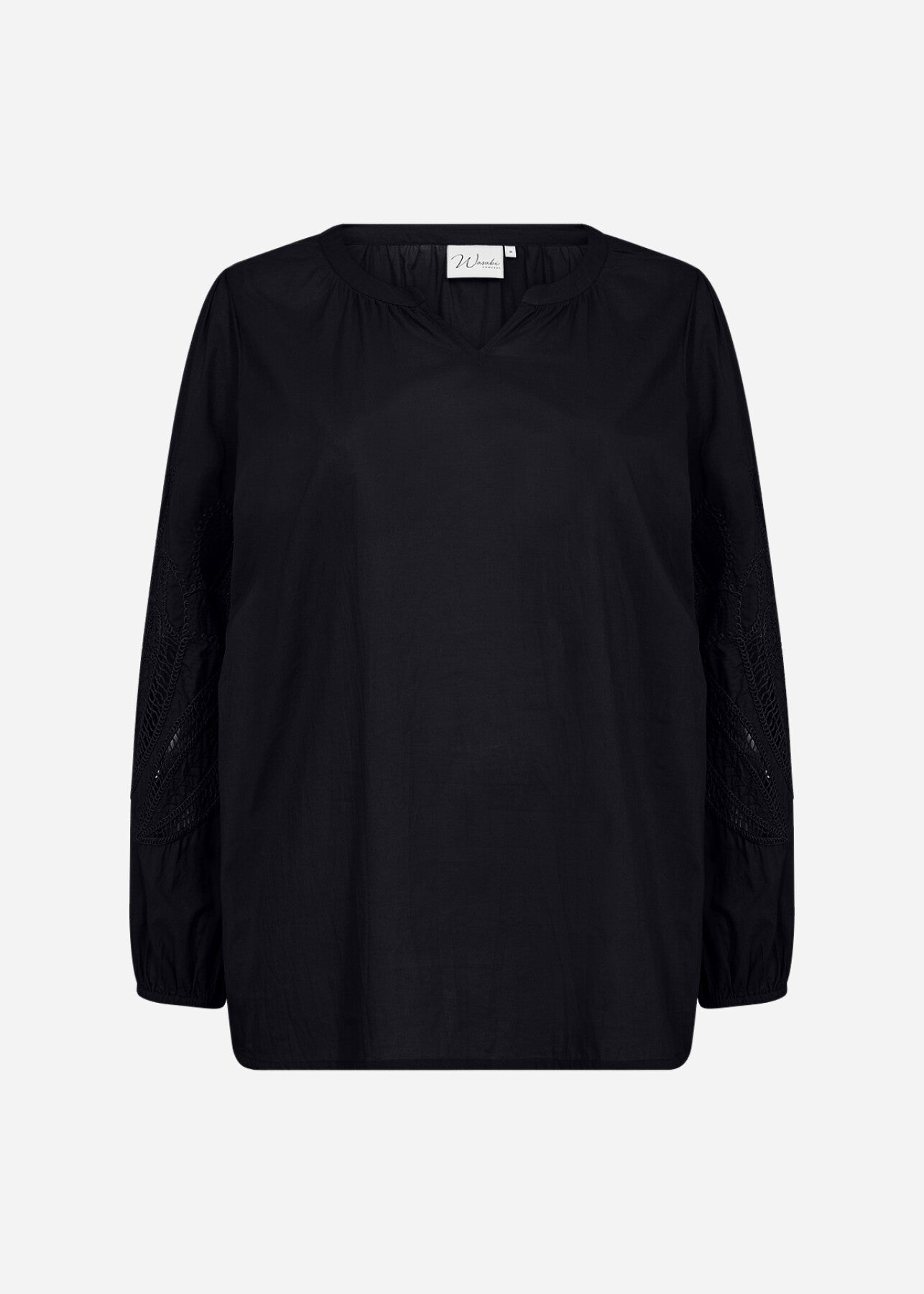 WA-MARY 4 präsentiert die Bluse aus 100% Bio-Baumwolle. Diese Bluse hat einen dezenten V-Ausschnitt, zarte Nähte an den Ärmeln und eine lockere Passform. Kombiniere sie mit einer Jeans oder einem taillierten Rock für einen schlichten und eleganten Look.