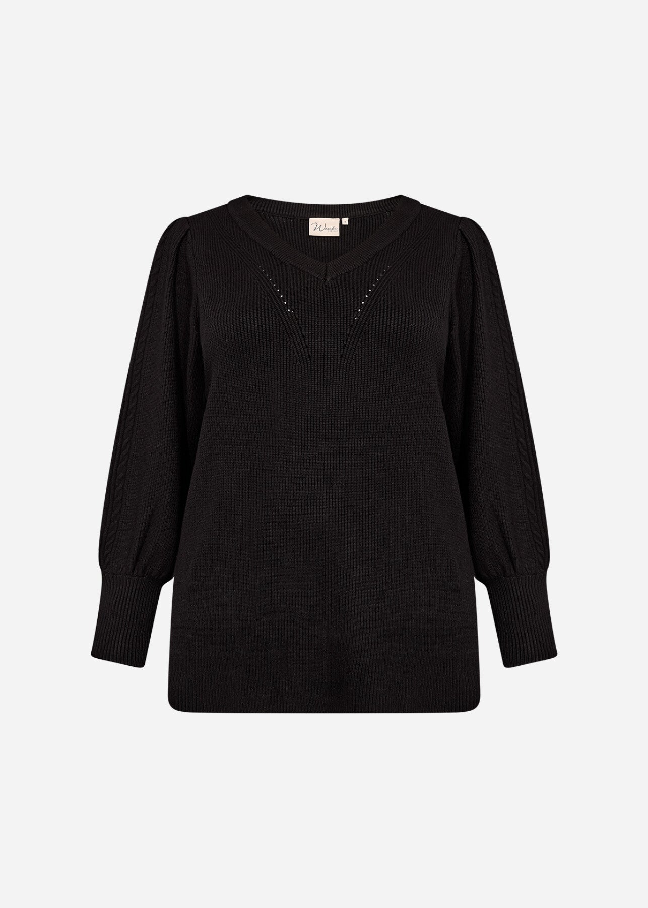 WA-NANINE 3 ist eine Bluse aus 50% LENZING™ ECOVERO™ Viskose, 27% Polyester, 23% Nylon. Die Bluse hat einen V-Ausschnitt mit dezenter Strickstruktur und Rippbündchen. Kombiniere die Bluse mit einer maßgeschneiderten Hose für einen eleganten Look oder mit einer Jeans für lässige Anlässe.