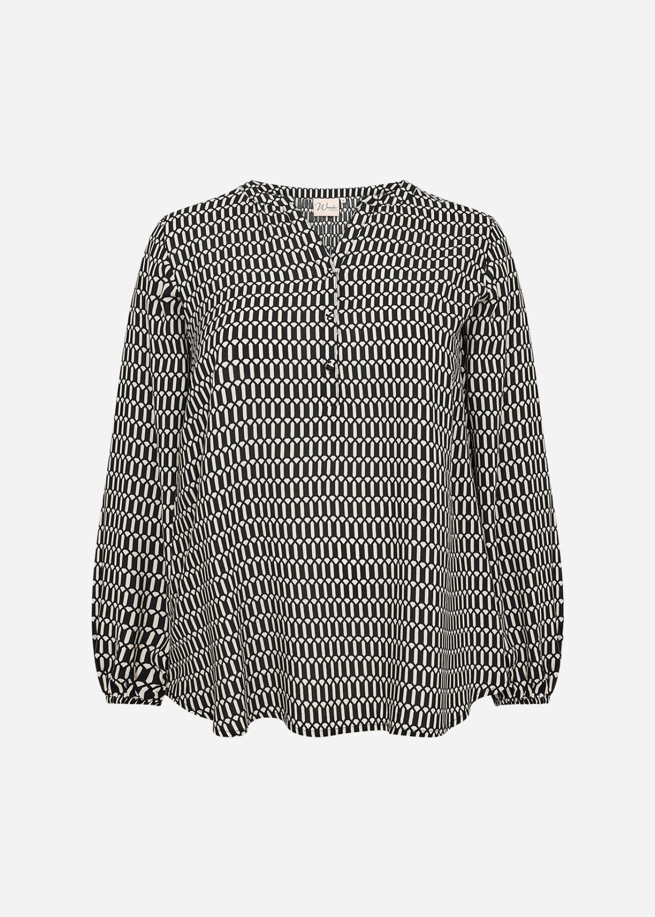Die WA-NORA 1 Bluse ist aus 100% LENZING™ ECOVERO™ Viskose gefertigt. Die Bluse hat einen V-Ausschnitt mit Knopfleiste, einen geometrischen Aufdruck und lange Ärmel. Kombiniere sie mit einer maßgeschneiderten Hose für einen eleganten Look oder einer Jeans für einen entspannten Ausflug.