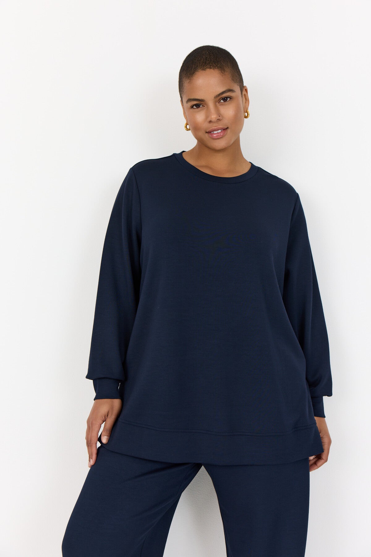 WA-SABINA 53 ist ein Sweatshirt aus 48% Modal, 48% Polyester, 4% Elastan. Es hat einen Rundhalsausschnitt, Seitenschlitze, lange Ärmel und eine lockere Passform. Kombiniere es mit Jeans oder Leggings für einen bequemen Look.