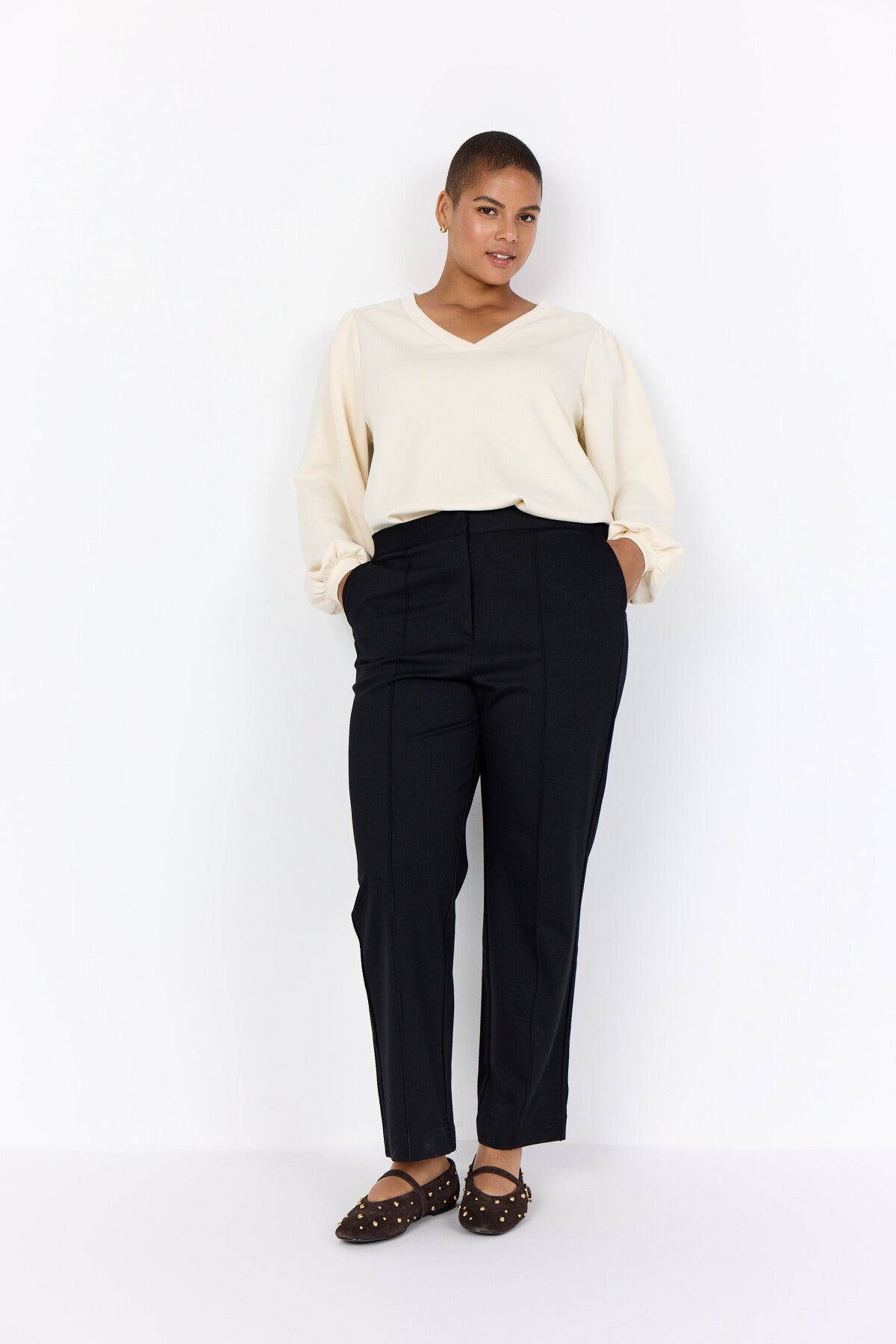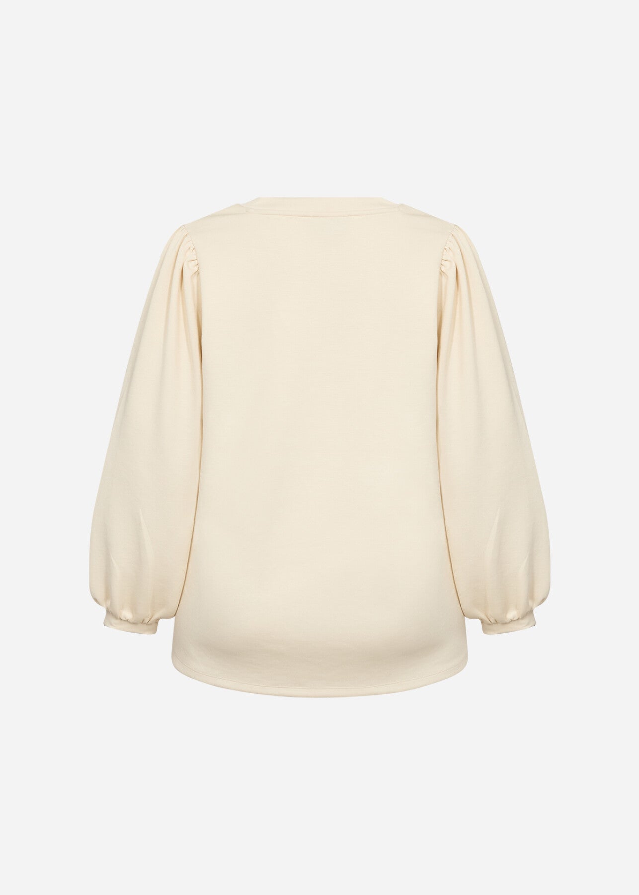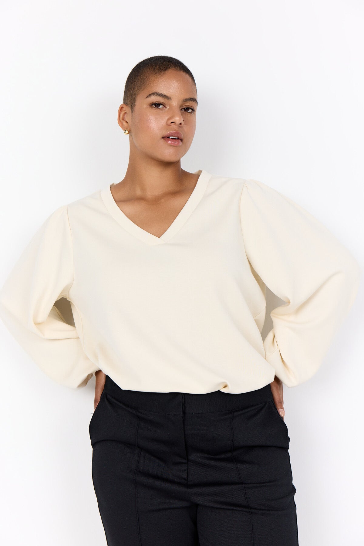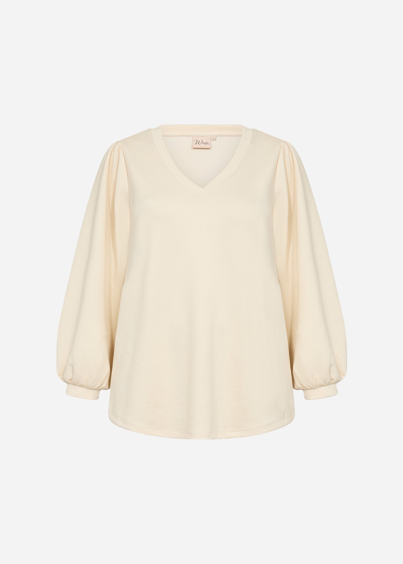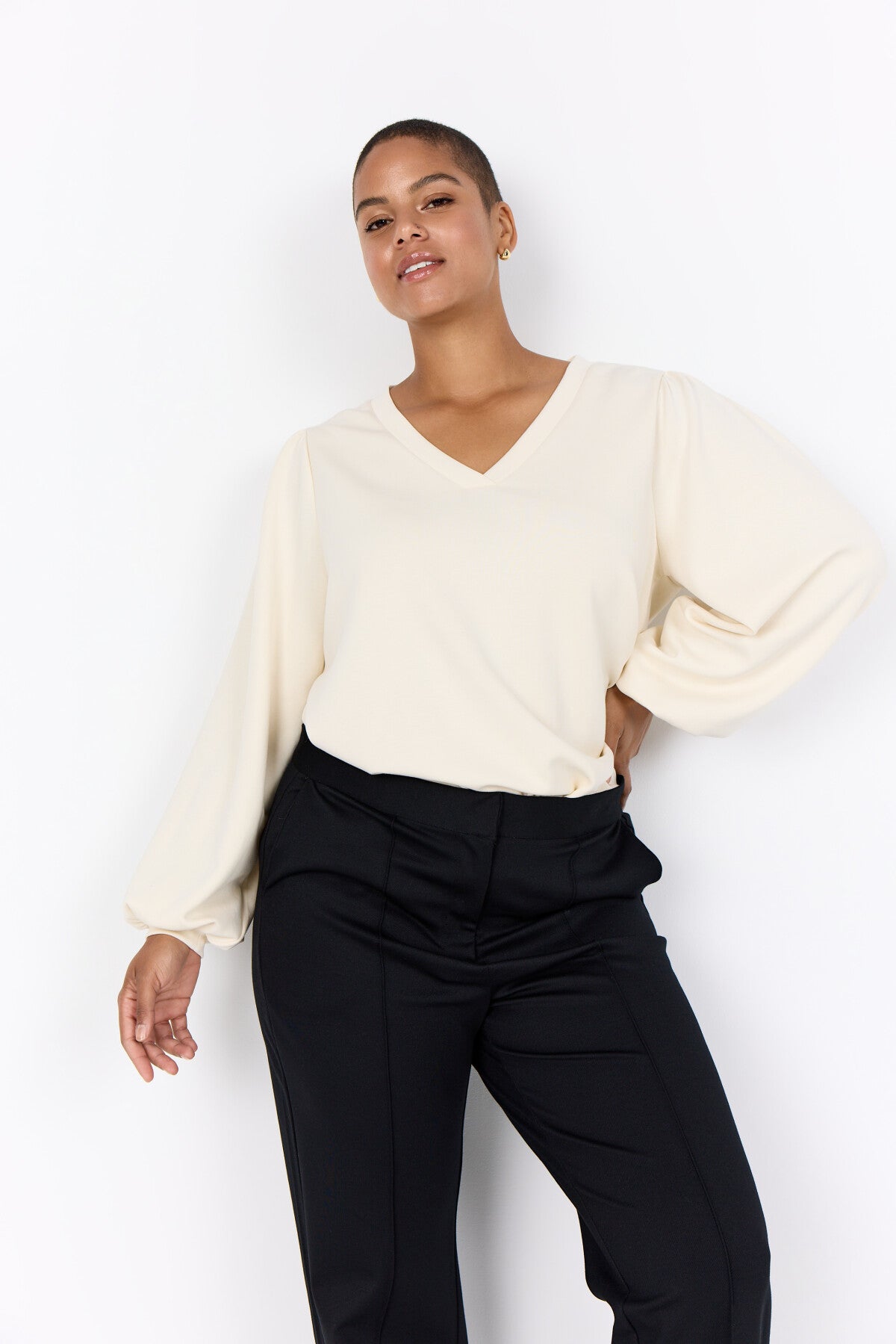 WA-SABINA 58 ist eine Bluse aus 48% Modal, 48% Polyester und 4% Elastan. Sie hat einen V-Ausschnitt, geraffte lange Ärmel und elastische Bündchen. Kombiniere sie mit einer maßgeschneiderten Hose oder einem eleganten Rock für einen smarten Look.