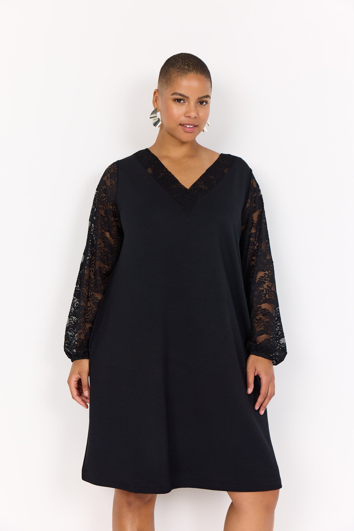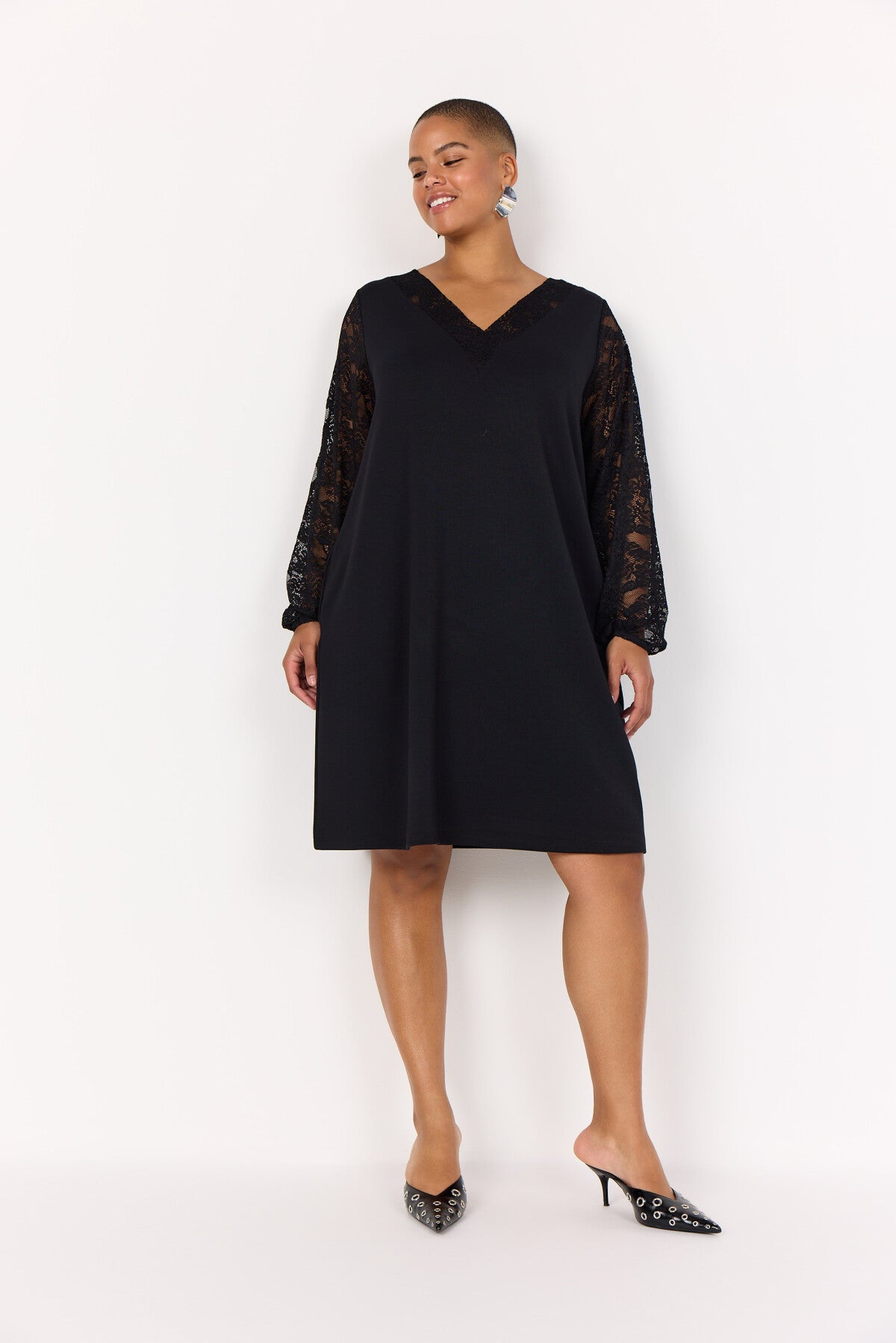 Das WA-SABINA 67 Kleid ist aus 48% Modal, 48% Polyester und 4% Elastan gefertigt. Es verfügt über elegante Spitzenärmel, einen schmeichelhaften V-Ausschnitt und eine lockere, knielange Passform. Kombiniere dieses Kleid mit Statement-Schmuck und Absätzen für einen eleganten Look.