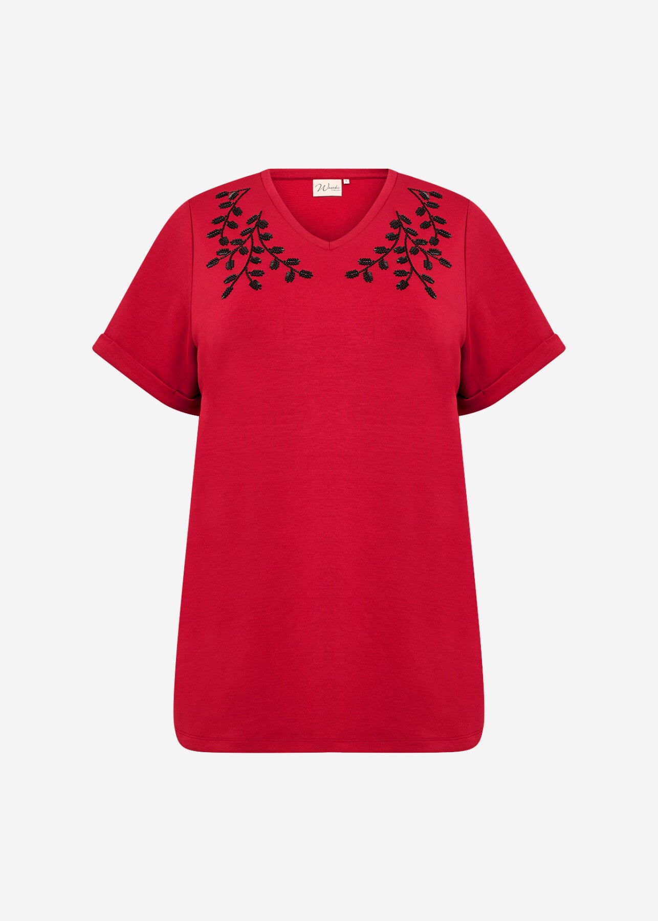 WA-SABINA 68 ist ein T-Shirt aus 48% Modal, 48% Polyester, 4% Elastan. Das elegante Design zeichnet sich durch einen V-Ausschnitt, gekrempelte kurze Ärmel und eine detaillierte Stickerei an den Schultern aus. Kombiniere es mit maßgeschneiderten Hosen für einen raffinierten Look oder mit Jeans für einen entspannten Stil.