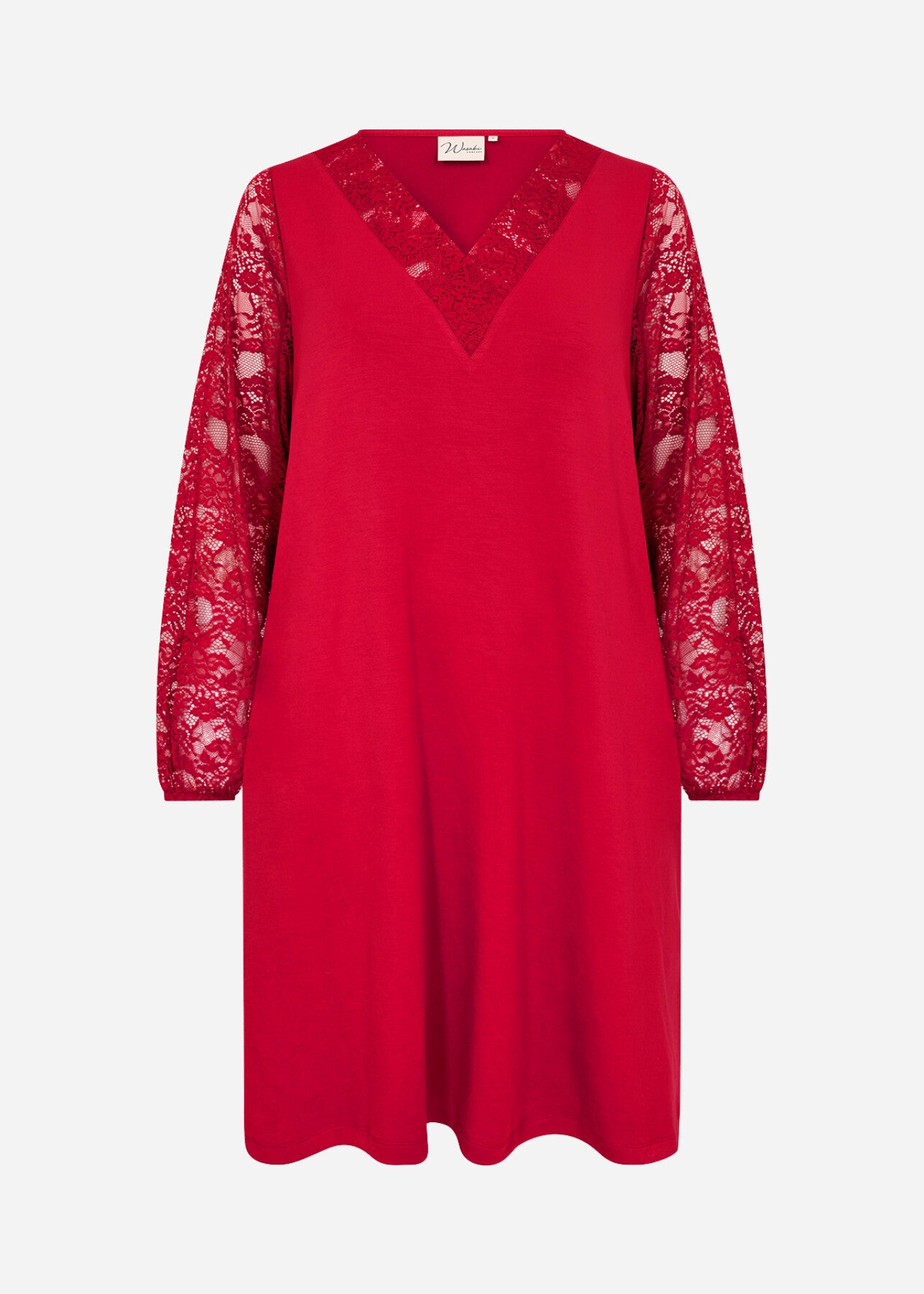Das WA-SABINA 67 Kleid ist aus 48% Modal, 48% Polyester und 4% Elastan gefertigt. Es verfügt über elegante Spitzenärmel, einen schmeichelhaften V-Ausschnitt und eine lockere, knielange Passform. Kombiniere dieses Kleid mit Statement-Schmuck und Absätzen für einen eleganten Look.