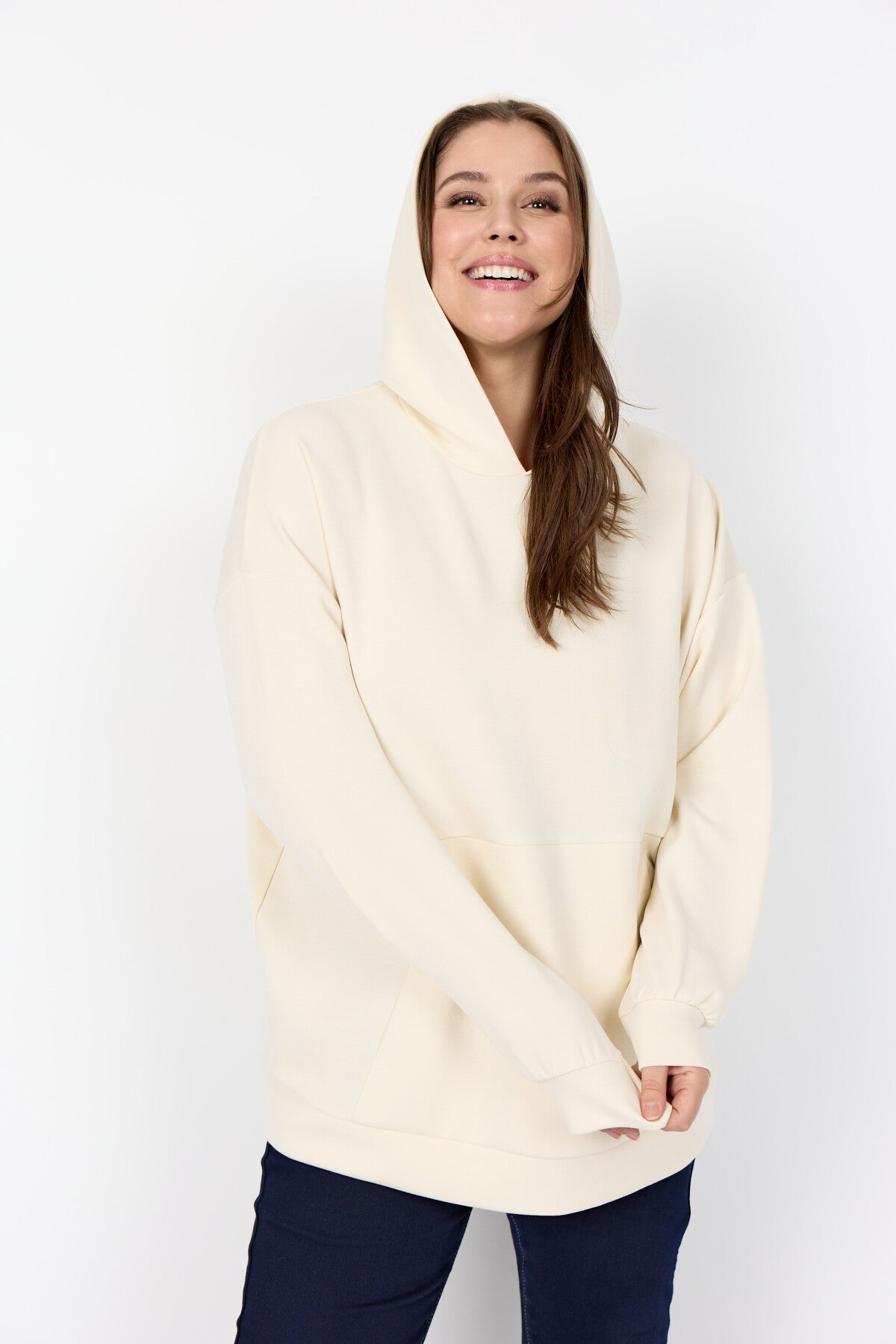 WA-SABINA 75 ist ein bequemer Hoodie aus 48% Modal, 48% Polyester und 4% Elastan. Das stylische Sweatshirt hat eine kuschelige Kapuze, Seitentaschen, eine lockere Passform und gerippte Bündchen. Kombinieren Sie es mit Jeans oder Leggings für einen coolen, lässigen Look.