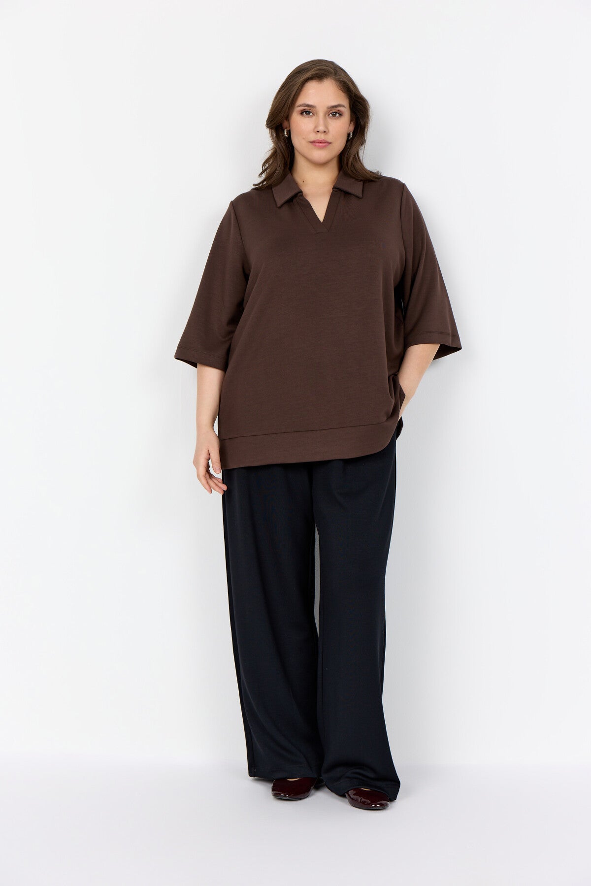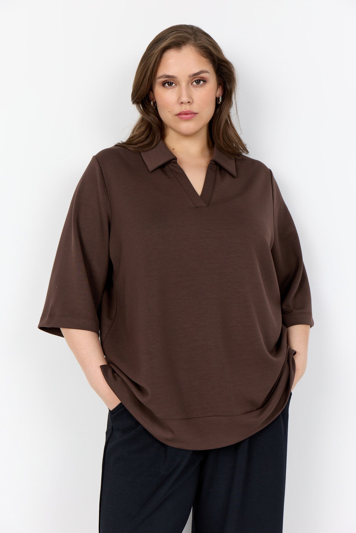 WA-SABINA 83 ist ein lässiges Shirt aus 48% Modal, 48% Polyester und 4% Elasthan. Es hat einen stilvollen Kragen mit V-Ausschnitt und weite, kurze Ärmel. Kombinieren Sie es mit Jeans für einen lässigen Look oder mit einer Hose für einen raffinierten Look.