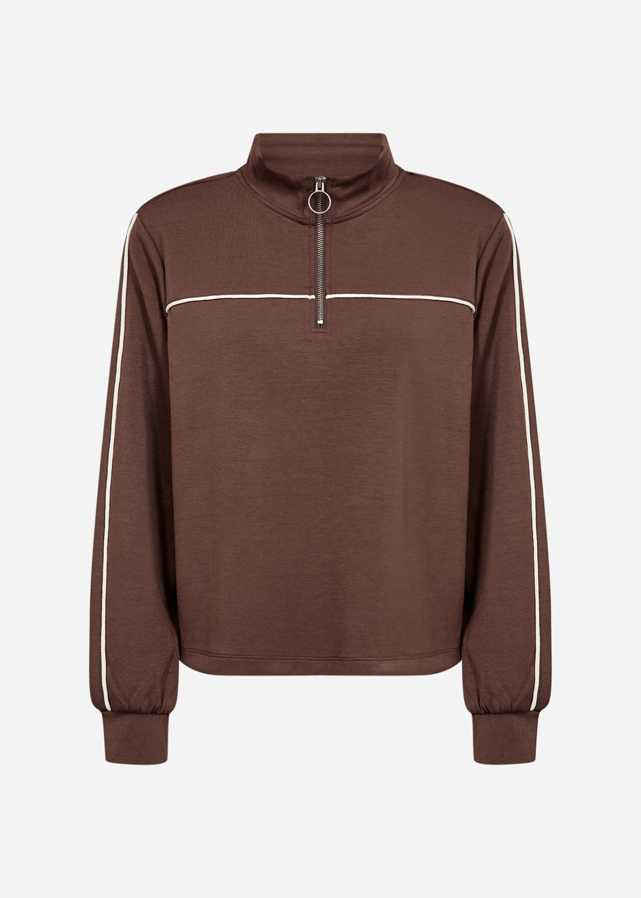 WA-SABINA 88 ist ein cooles Sweatshirt aus 48% Modal, 48% Polyester und 4% Elasthan. Es hat einen hohen Kragen mit halbem Reißverschluss und stylische Paspel-Details an den Ärmeln und auf der Brust. Kombinieren Sie es mit Jeans oder Jogginghosen für einen entspannten und coolen Look.