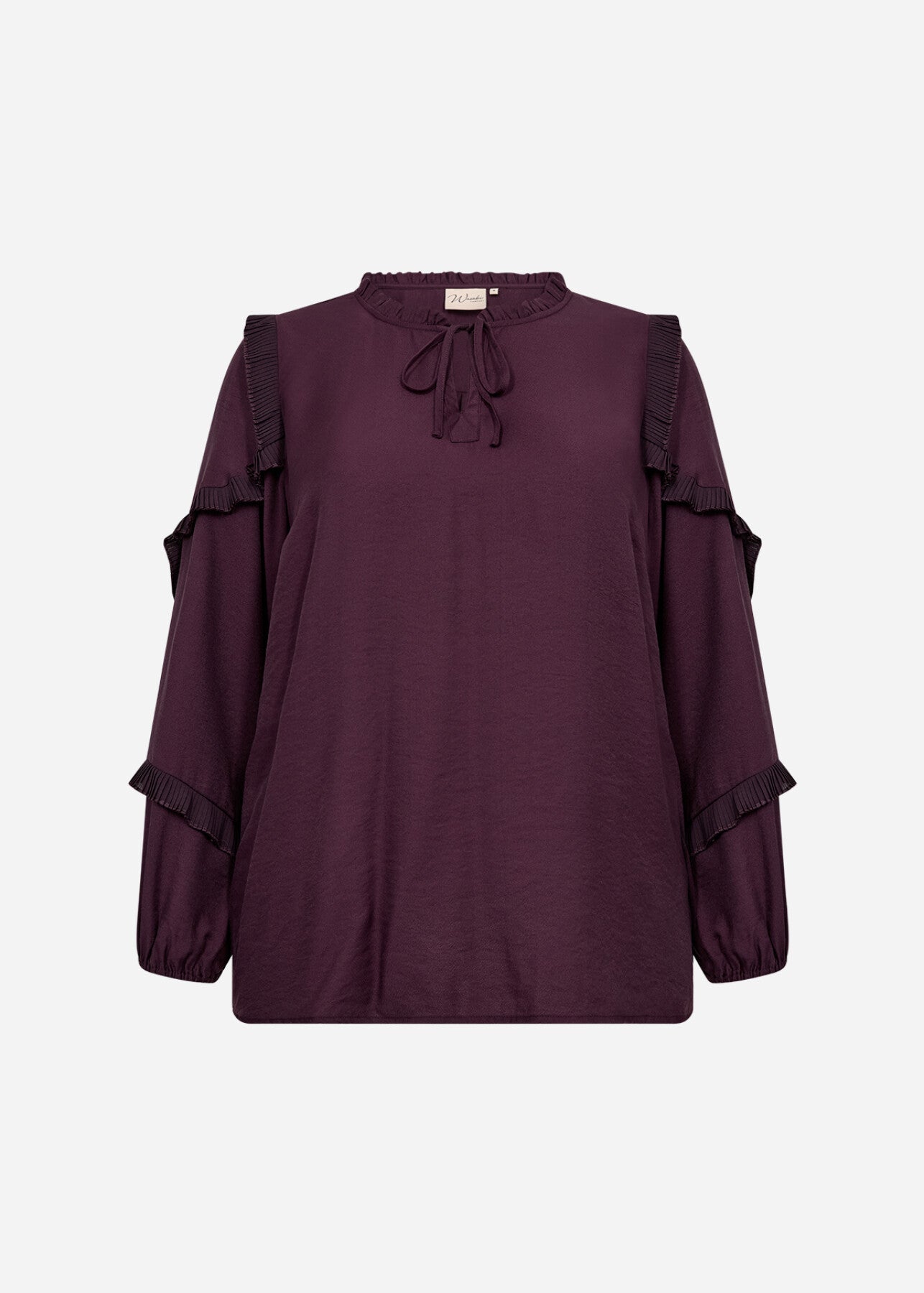 WA-SAFIA 1 ist eine Bluse aus 85% LENZING™ ECOVERO™ Viskose, 15% Nylon. Diese elegante Bluse hat plissierte Rüschendetails an den Ärmeln, eine Bindung im Nacken, einen dezenten Kragen und eine lockere Passform. Kombiniere sie mit einer maßgeschneiderten Hose für einen raffinierten Look oder mit einer Jeans für einen coolen, lässigen Stil.