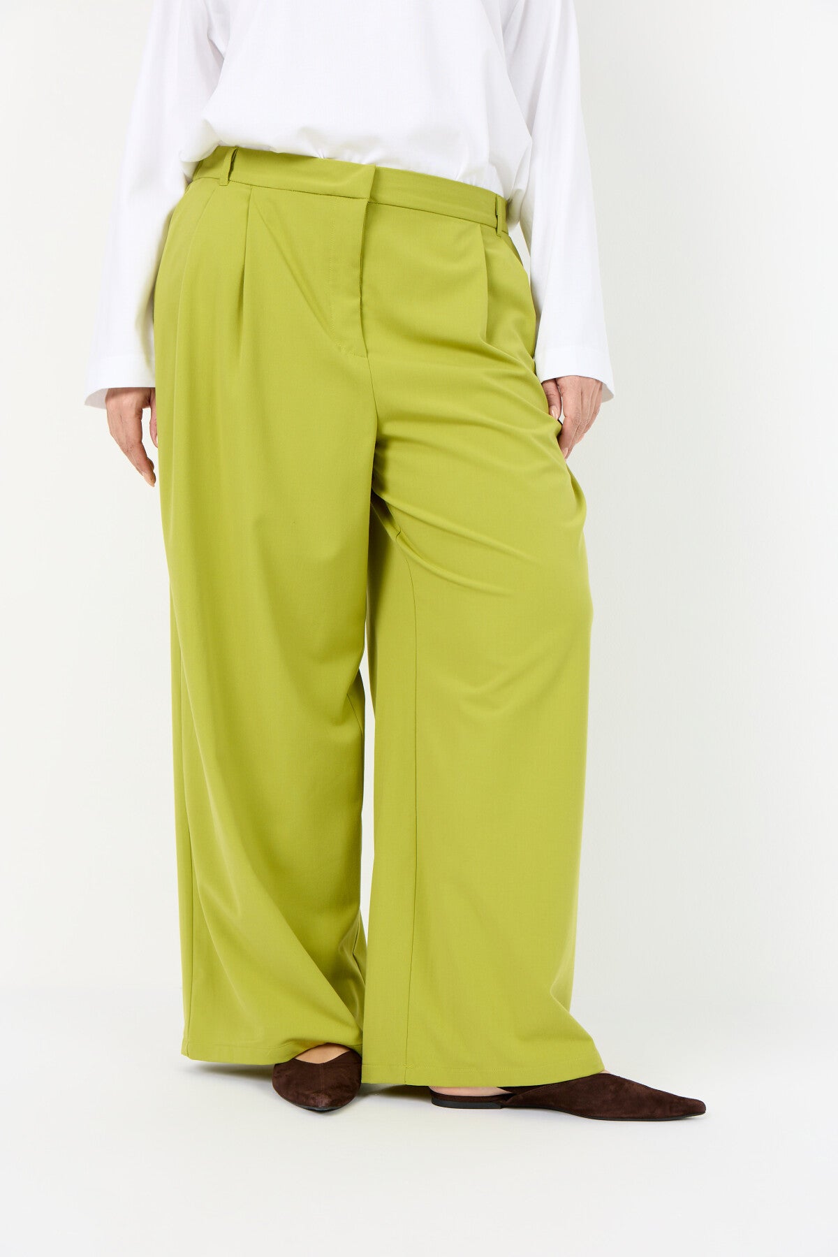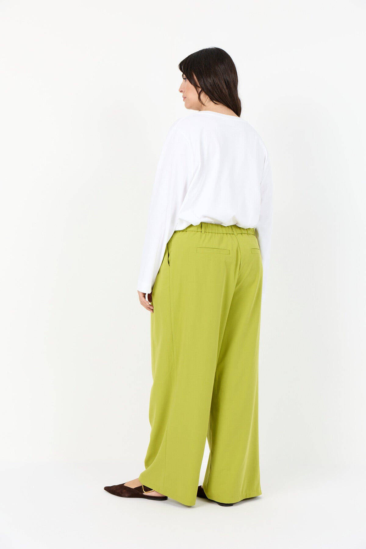 WA-SALLY 2 ist eine modische Hose aus 63% recyceltem Polyester, 33% Viskose und 4% Elastan. Die elegante Hose hat eine hohe Taille, ist mit Falten versehen und hat ein weit geschnittenes Bein. Kombinieren Sie sie mit einer taillierten Bluse oder einem lässigen Pullover für einen stilvollen Look.