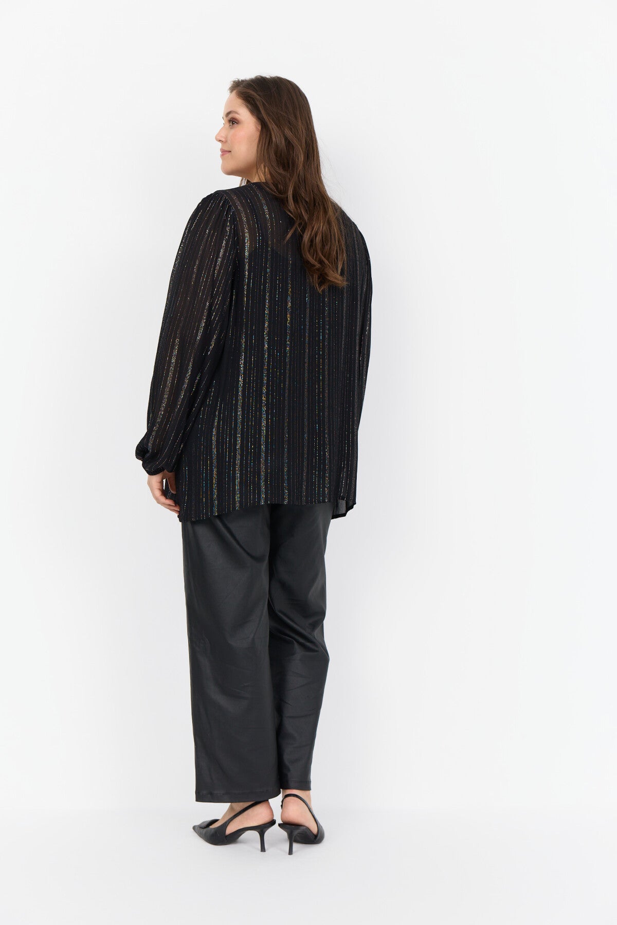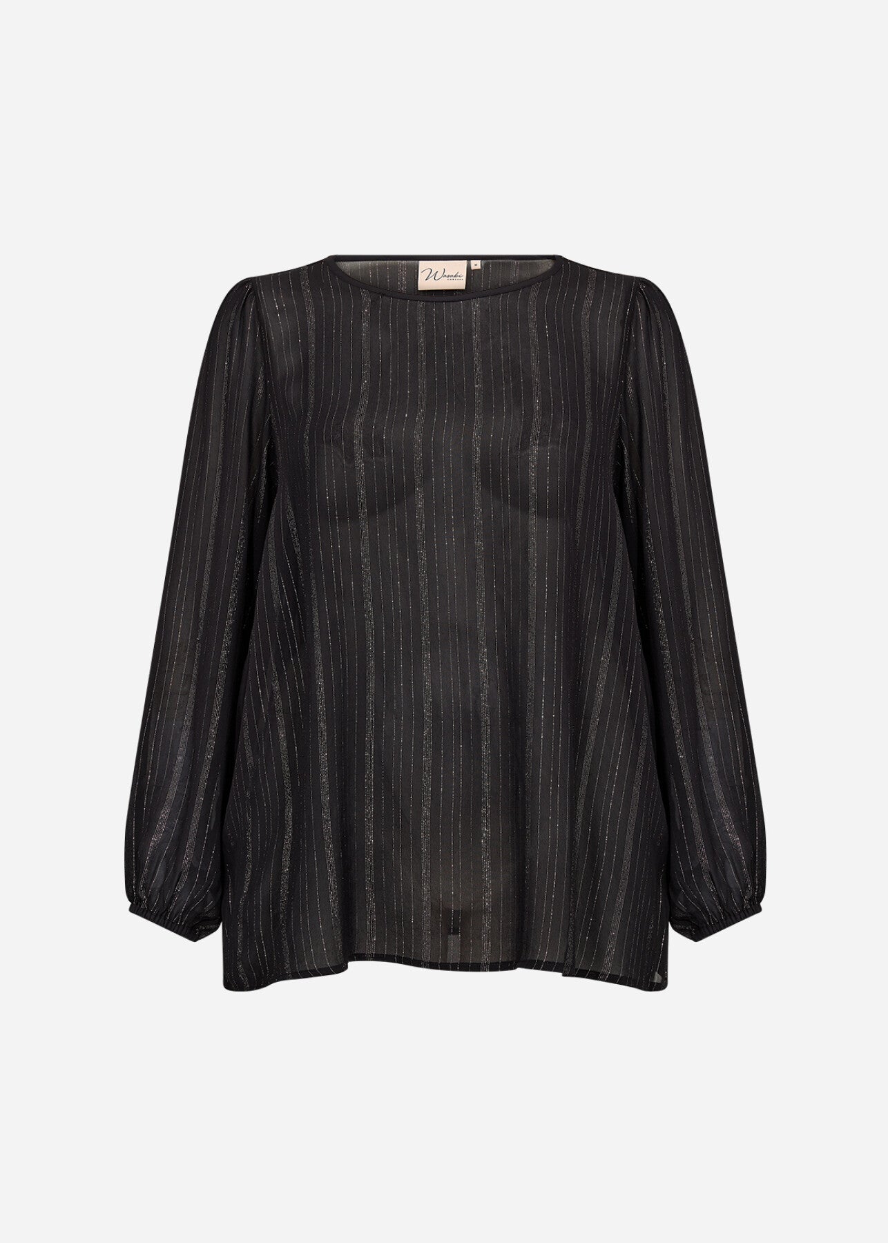 Die Bluse WA-SELA 1 ist aus 99% Viskose und 1% Lurex gefertigt. Die elegante Bluse hat lange Ärmel, einen Rundhalsausschnitt und einen dezenten Metallic-Streifenprint mit zarter Textur, der ihr einen einzigartigen Touch verleiht. Kombiniere sie mit einer maßgeschneiderten Hose oder Jeans für einen raffinierten Look.