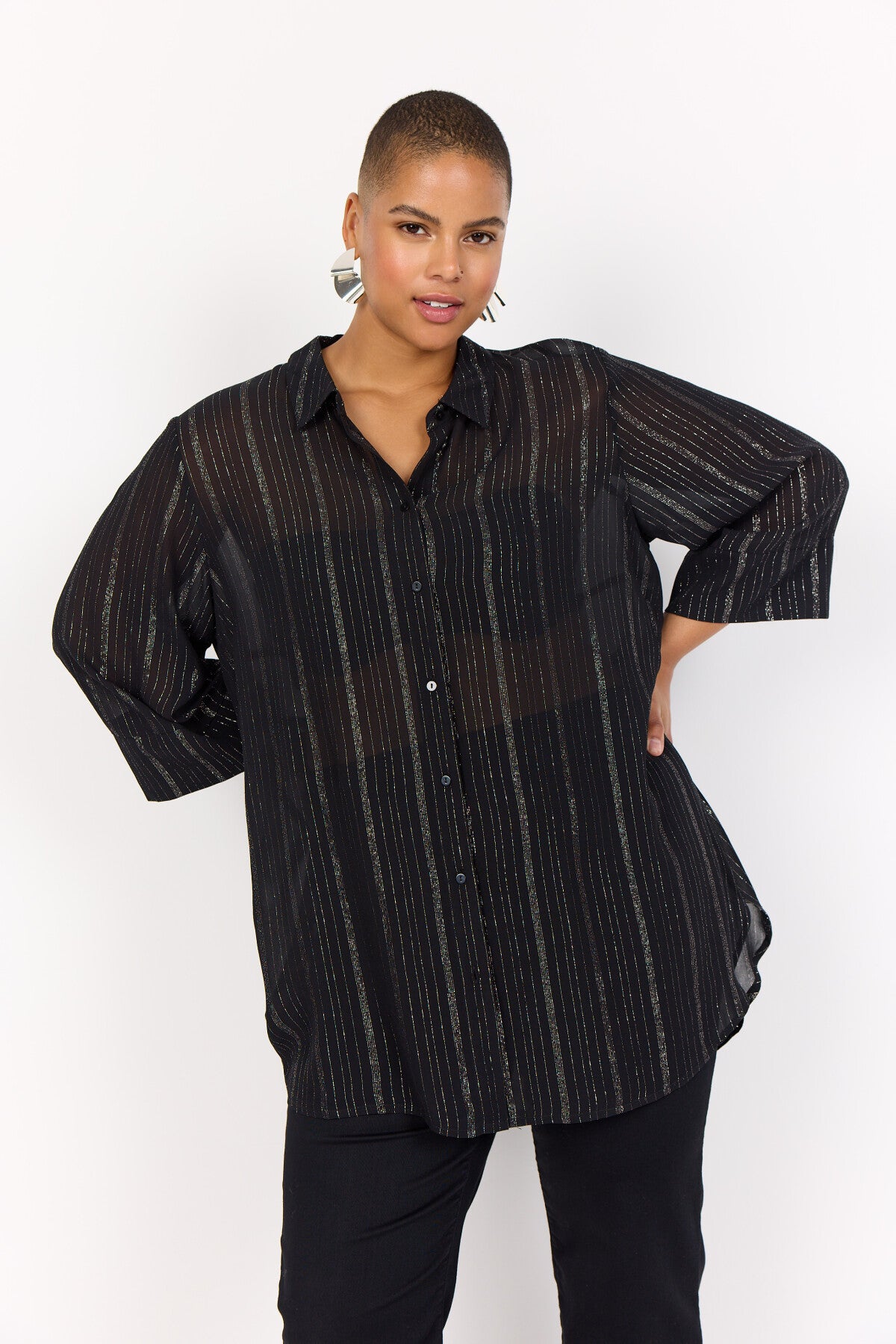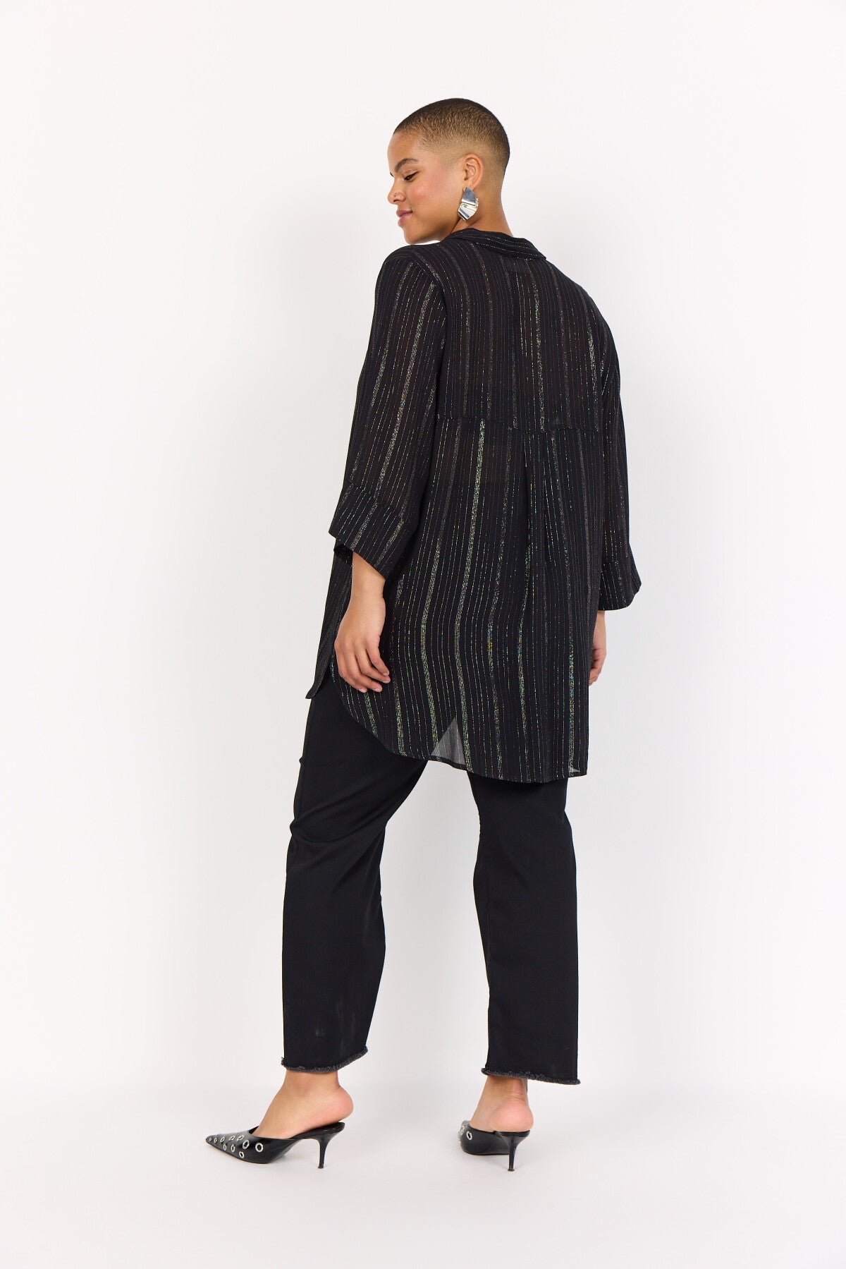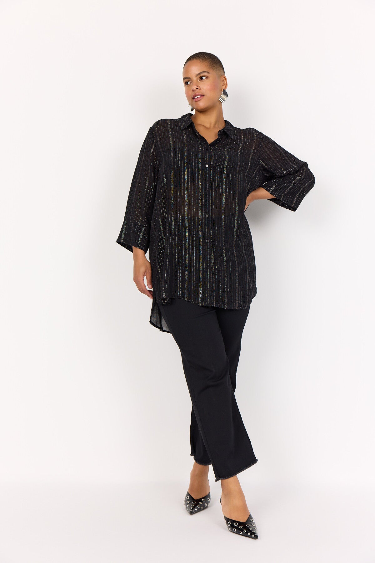 Das WA-SELA 3 Hemd ist aus 99% Viskose und 1% Lurex gefertigt. Das Hemd hat einen klassischen Kragen, einen Knopfverschluss und elegante vertikale Glitzerstreifen. Kombiniere es mit einer maßgeschneiderten Hose oder Jeans für einen raffinierten Look.