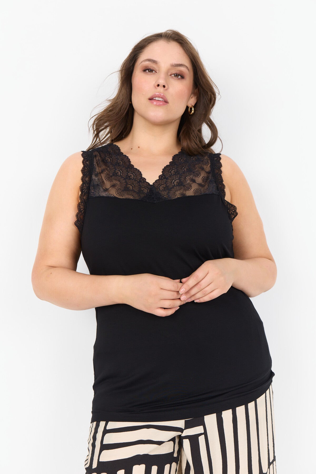 WA-STELLA 36 ist ein Top aus 93% Lyocell, 7% Elastan. Es hat ein elegantes Oberteil aus Spitze, gepaart mit einer weichen, bequemen Passform. Dieses einzigartige Design lässt sich gut mit einem Blazer kombinieren oder mit deinen Lieblingsaccessoires zu verschiedenen Looks stylen.