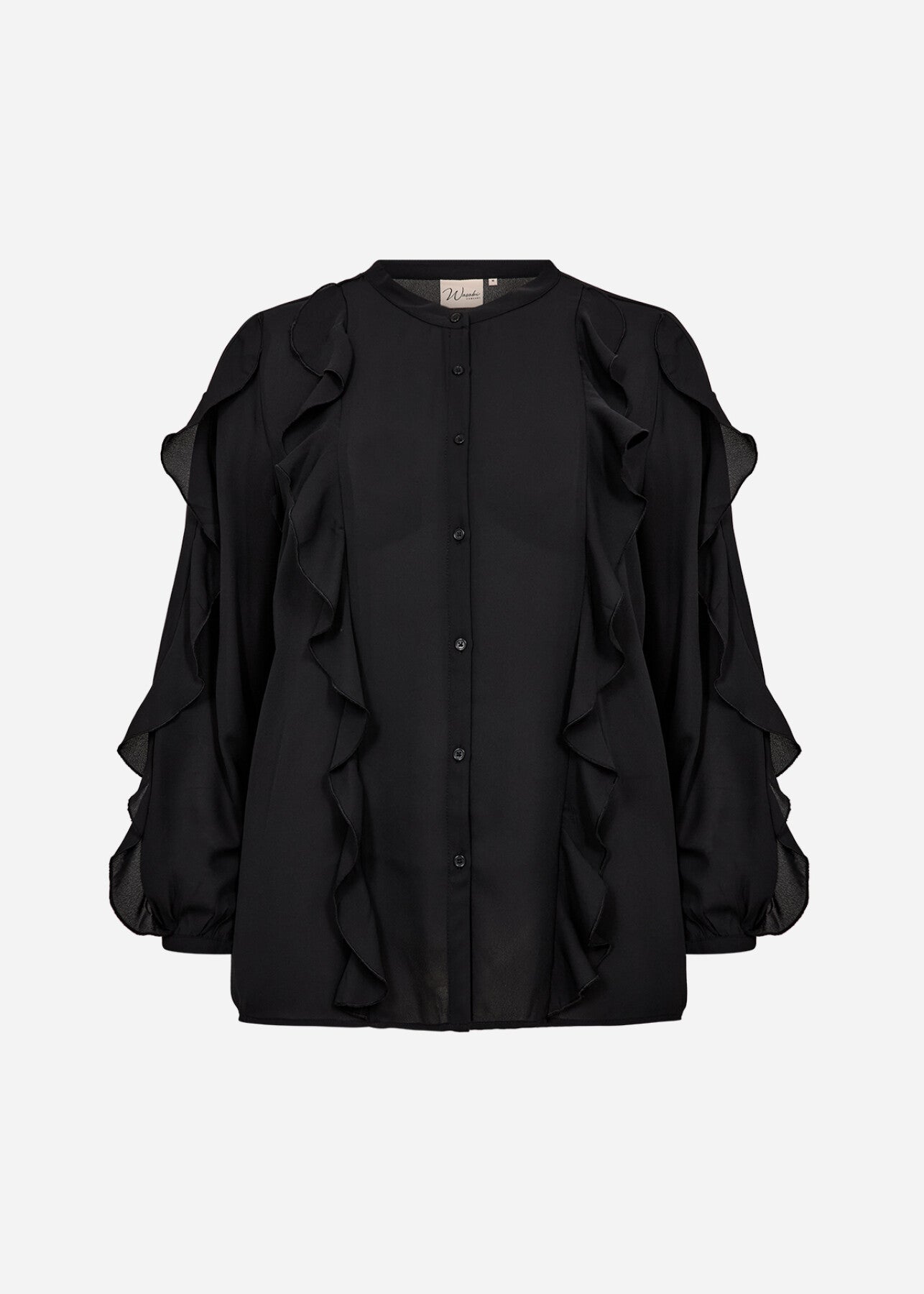 Die WA-THERESE 7 Bluse ist aus 100 % recyceltem Polyester hergestellt. Sie hat zarte Rüschendetails, eine geknöpfte Vorderseite und lange Ärmel mit Rundhalsausschnitt. Die elegante Bluse lässt sich zu jeder Gelegenheit gut mit einer maßgeschneiderten Hose oder einem eleganten Rock kombinieren.